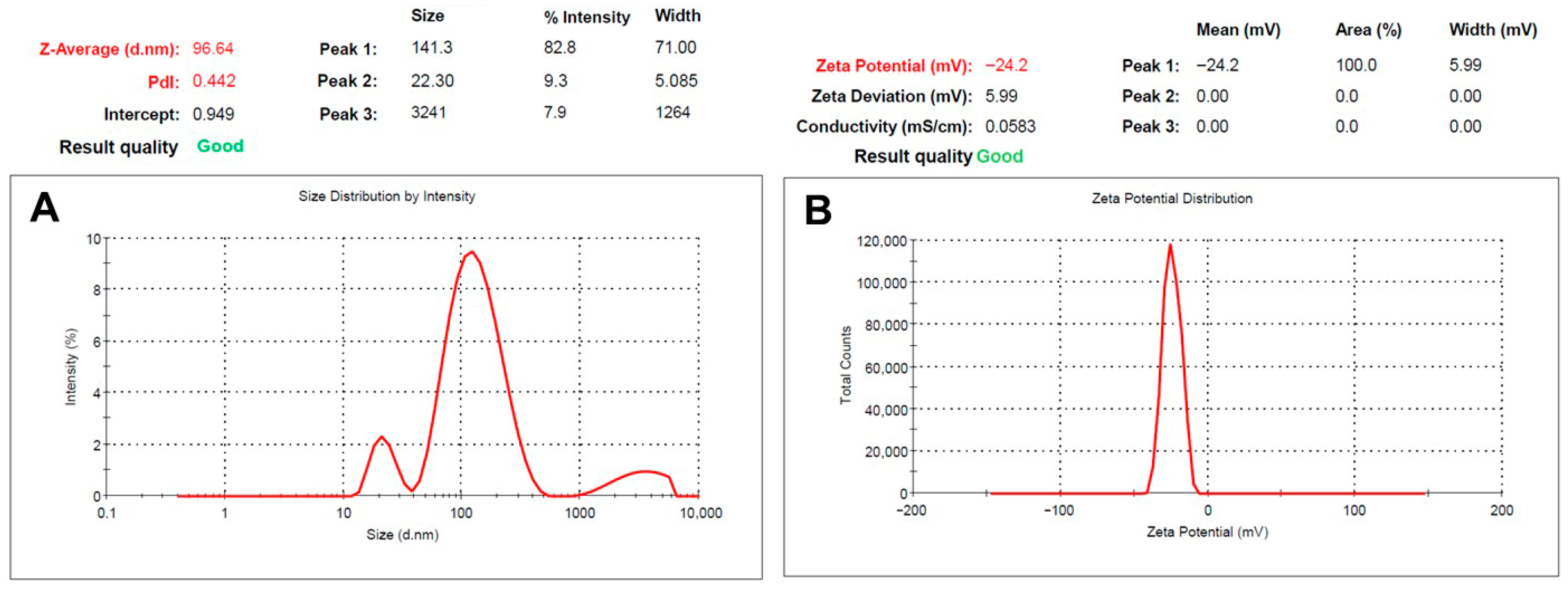 Figure 8B) indicates electrostatic stabilization of the nanoemulsion particles following aqueous dispersion. Furthermore, the negative surface charge can positively influence interactions and migration through the mucin layer covering the intestinal membrane. This could enhance the drug’s absorption within the nanoparticles’ cores following cellular uptake.