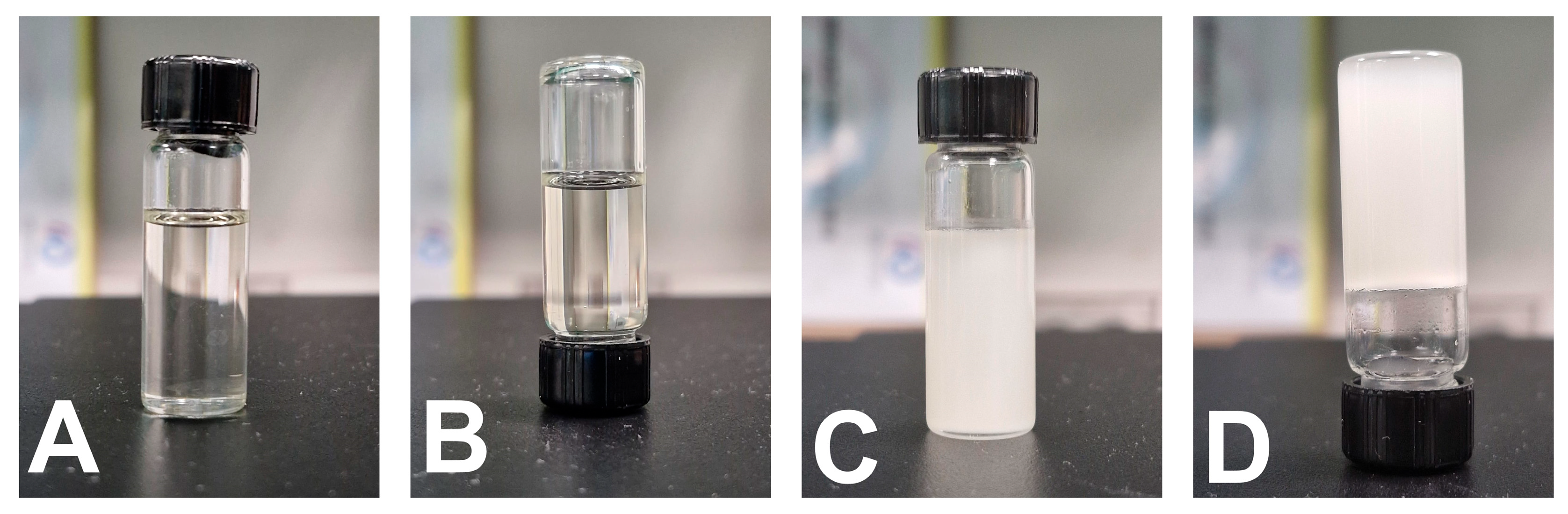 Figure 10C,D show that flipping solidified T-SNEDDS formulations with no flowing tendency. This reveals the ability of the T-SNEDDS formulation to maintain its thermoresponsive performance following exposure to cooling and heating cycles.