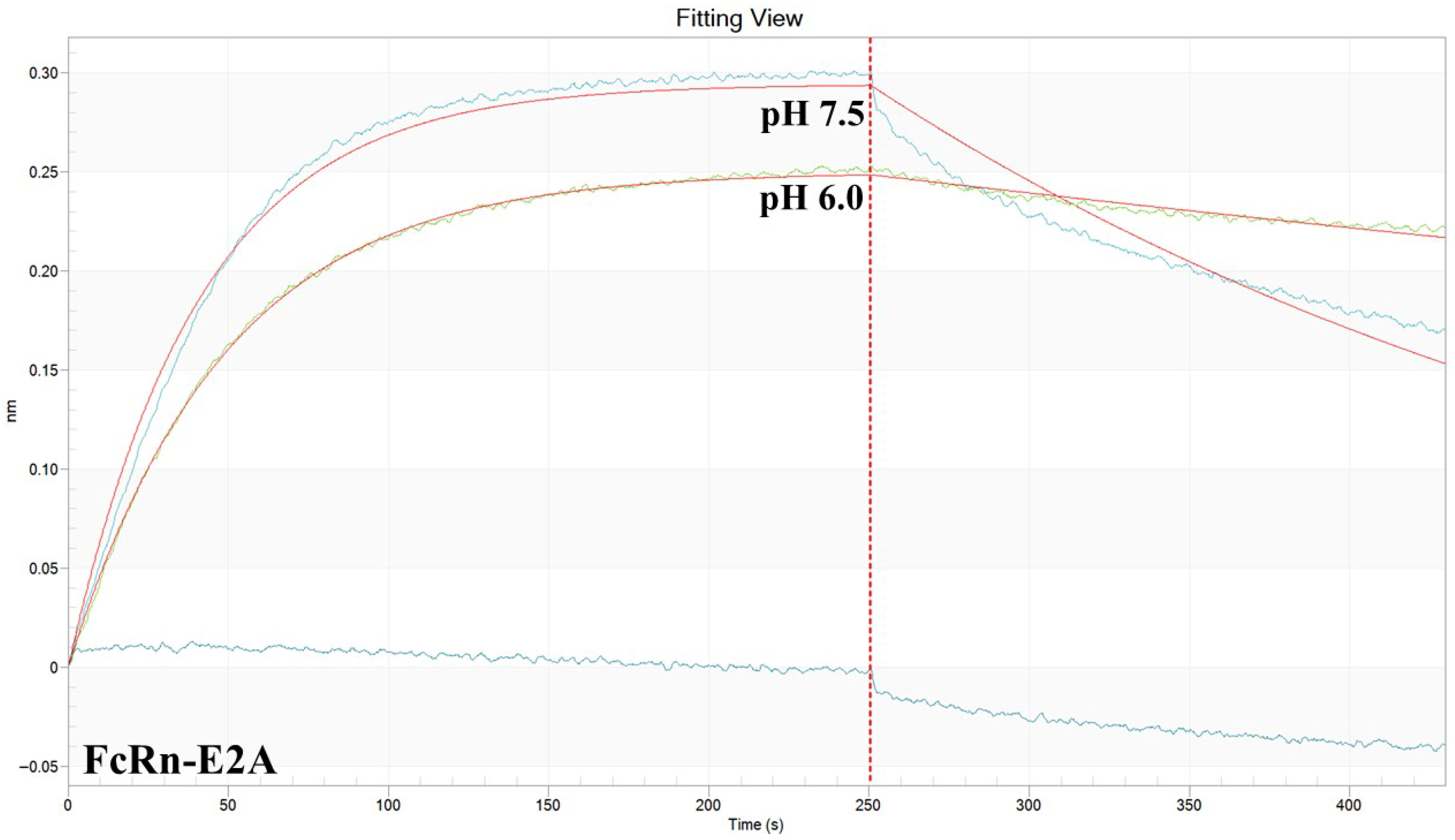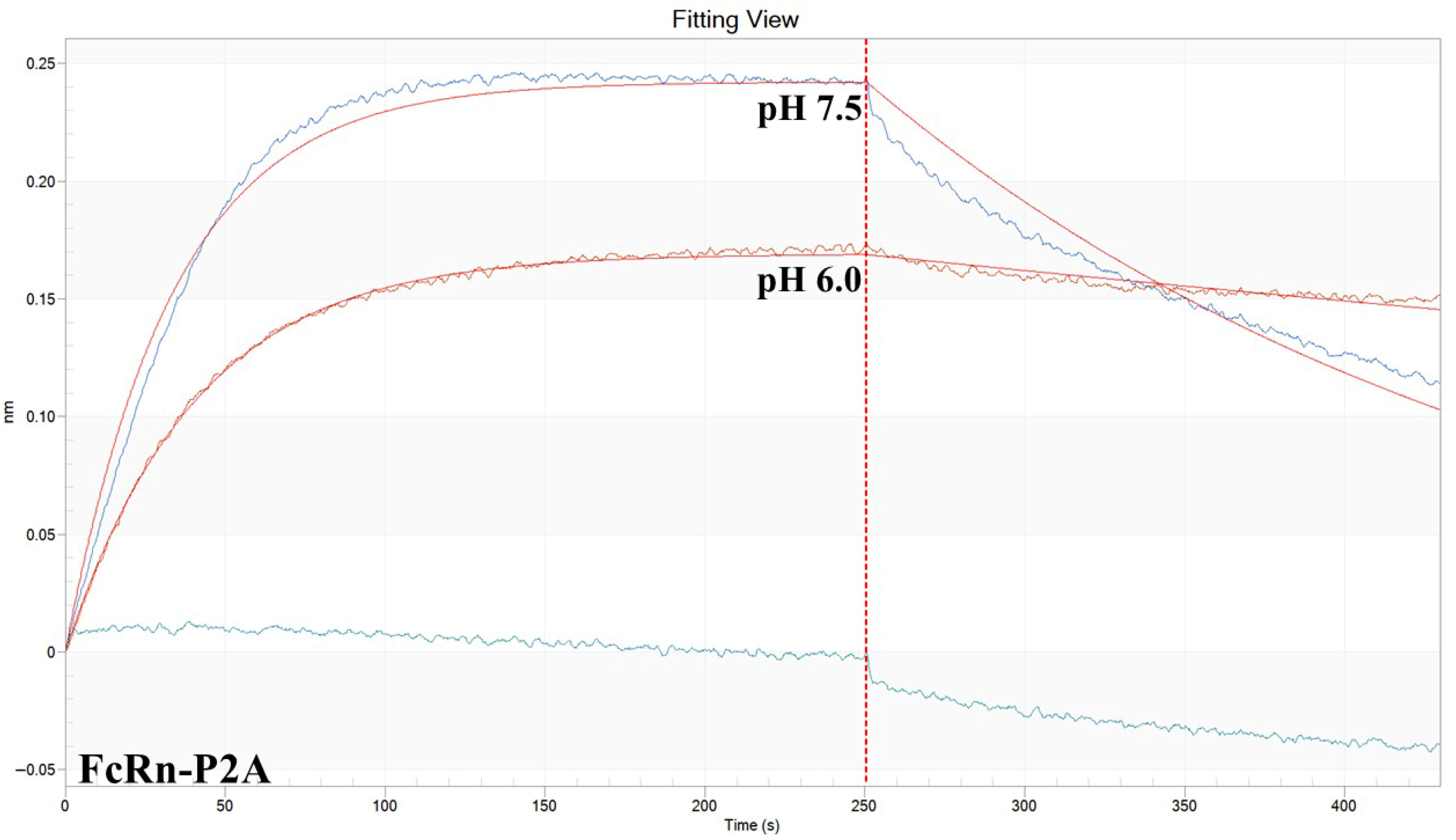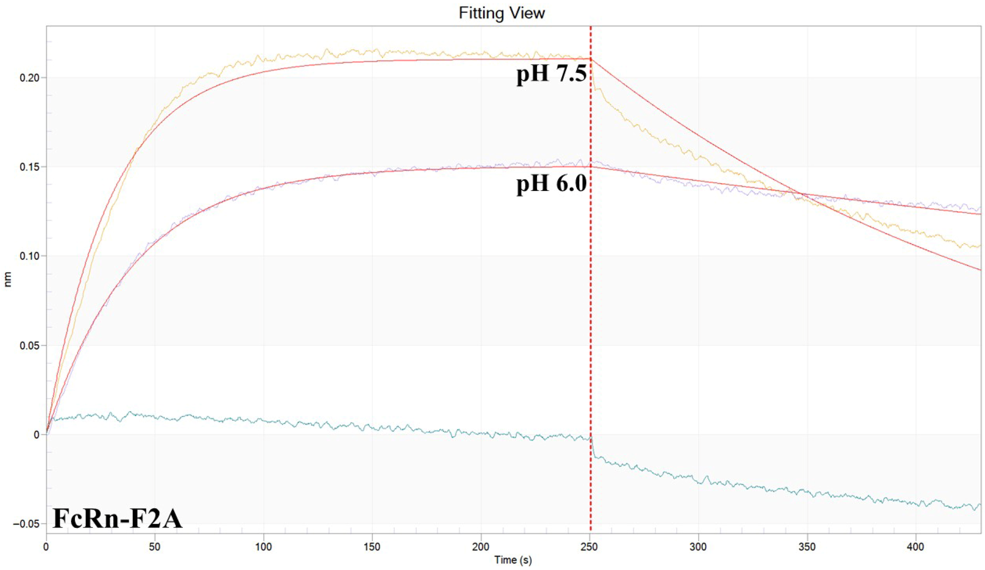 To obtain a more accurate assessment of the binding affinity of the three FcRn variants (P2A, E2A, and F2A) toward antibody 900 under different pH conditions, bio-layer interferometry (BLI) was performed. The main kinetic parameters of the interactions are summarized in