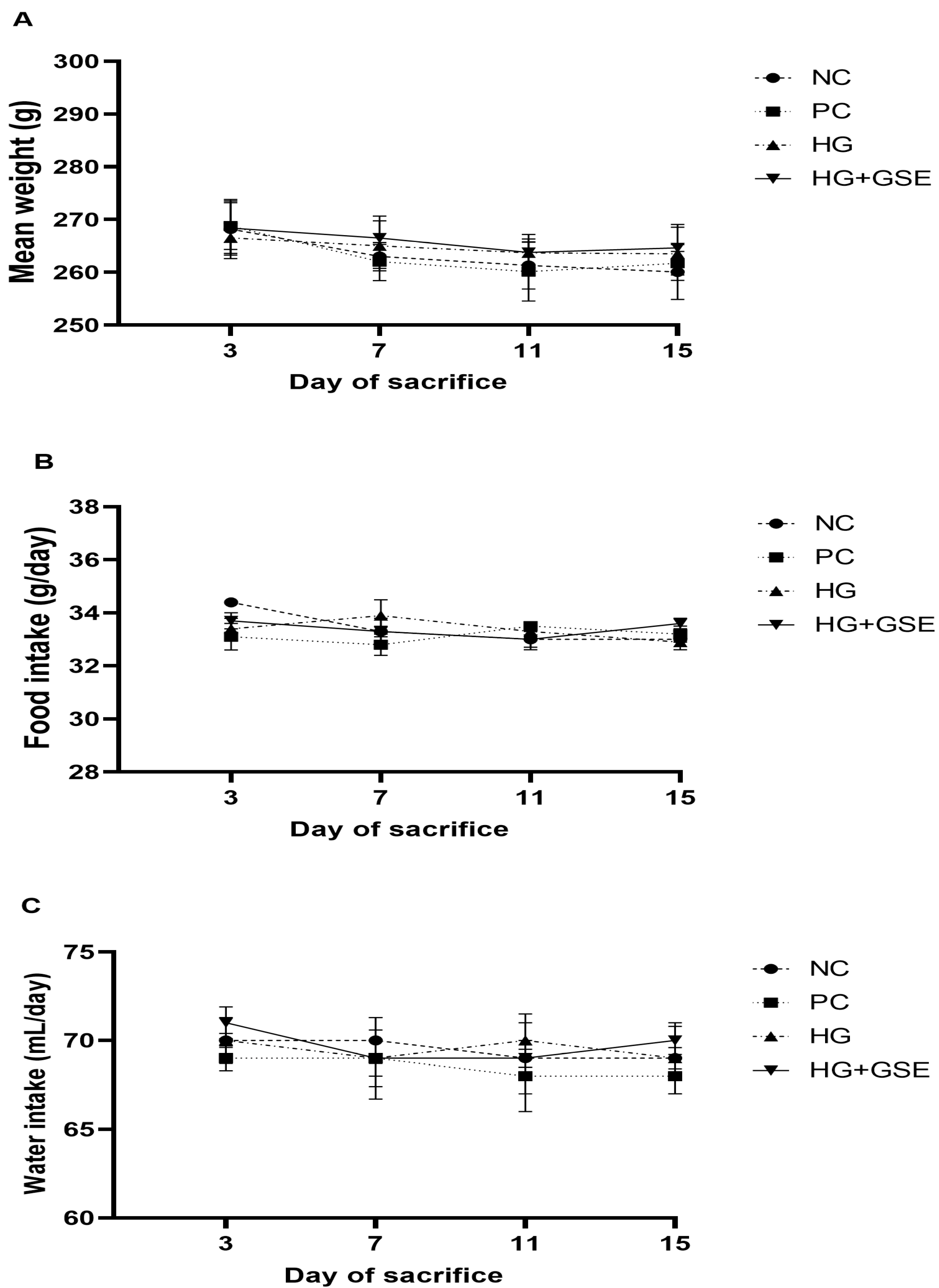 - GSE group—rats treated with the gel with incorporated GSE (HG+GSE).
