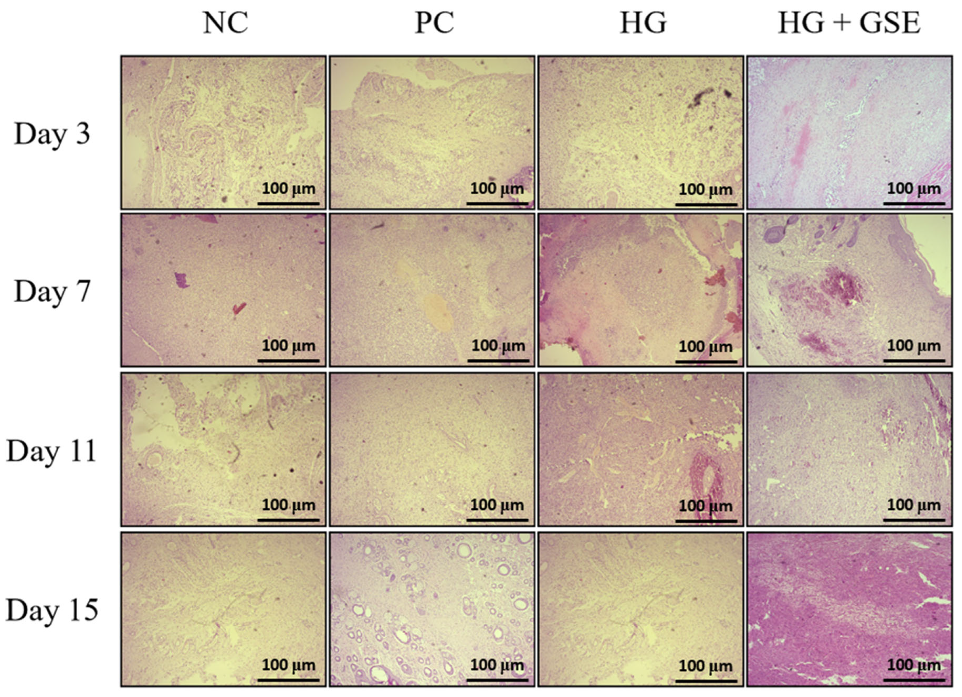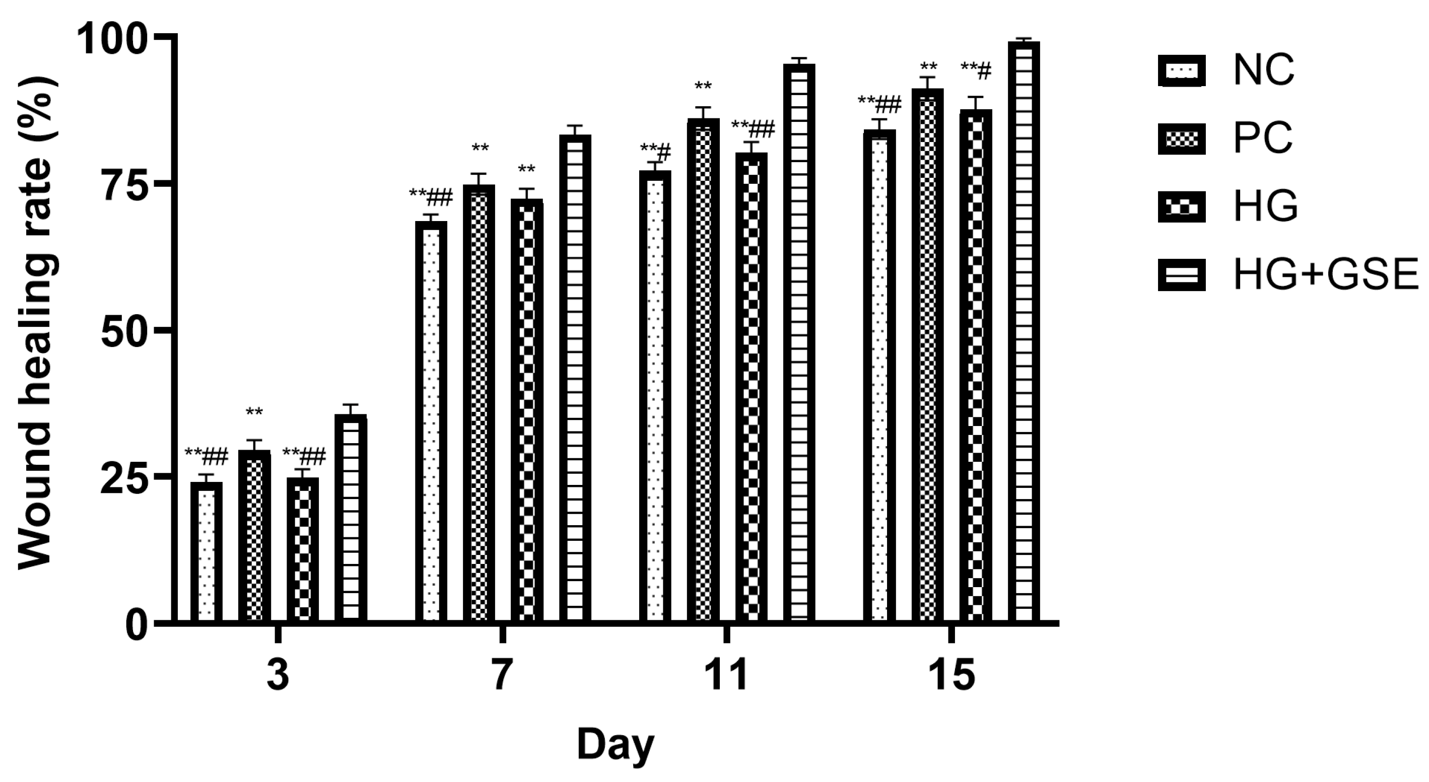 3.2.1. Wound Healing Progression Following HG+GSE Treatment
