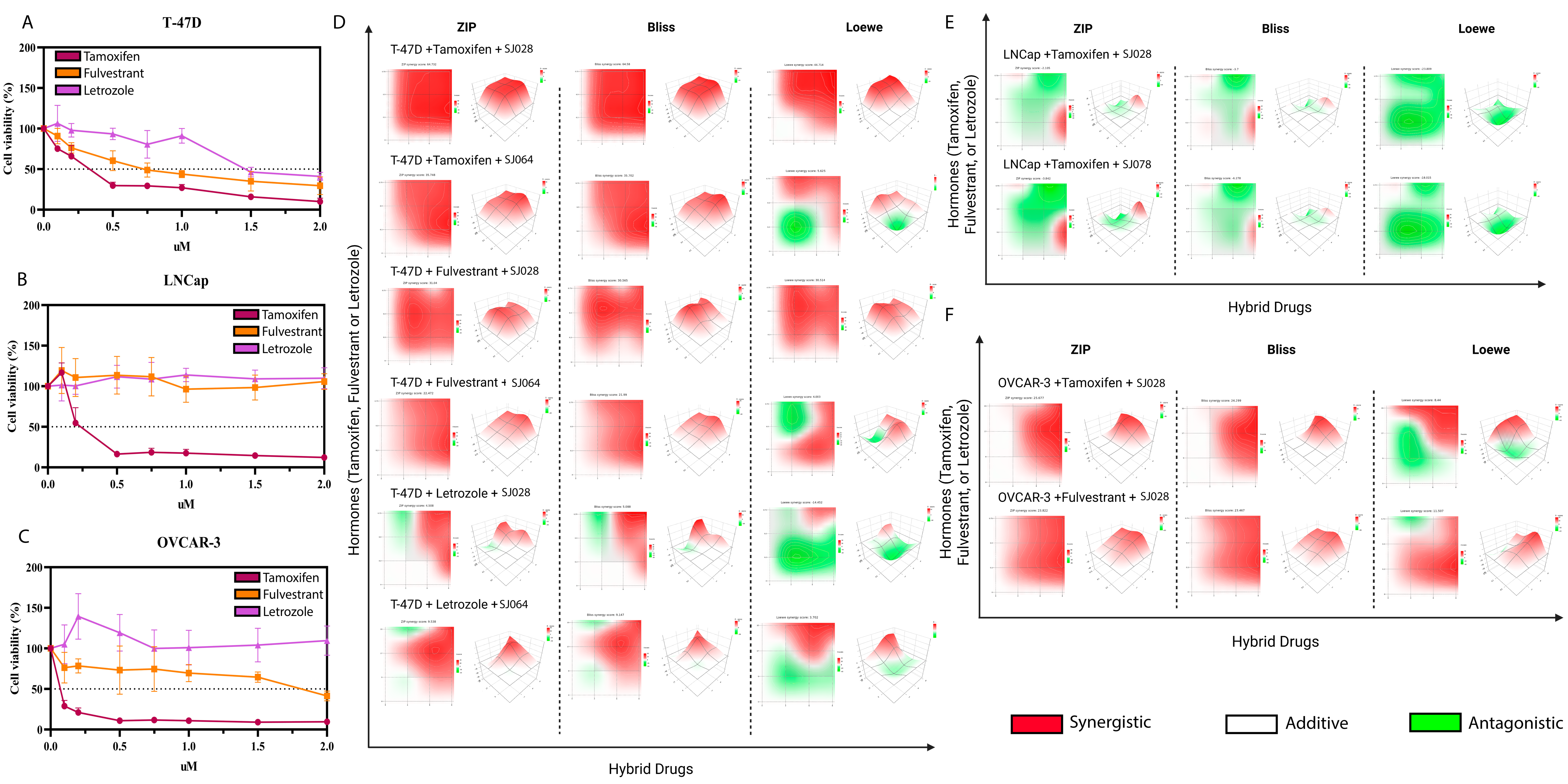 3.3. Hormone Therapies Synergize with Xanthene-Dihydropyrimidinone Hybrid Compounds in Hormone-Driven Cancer Lines