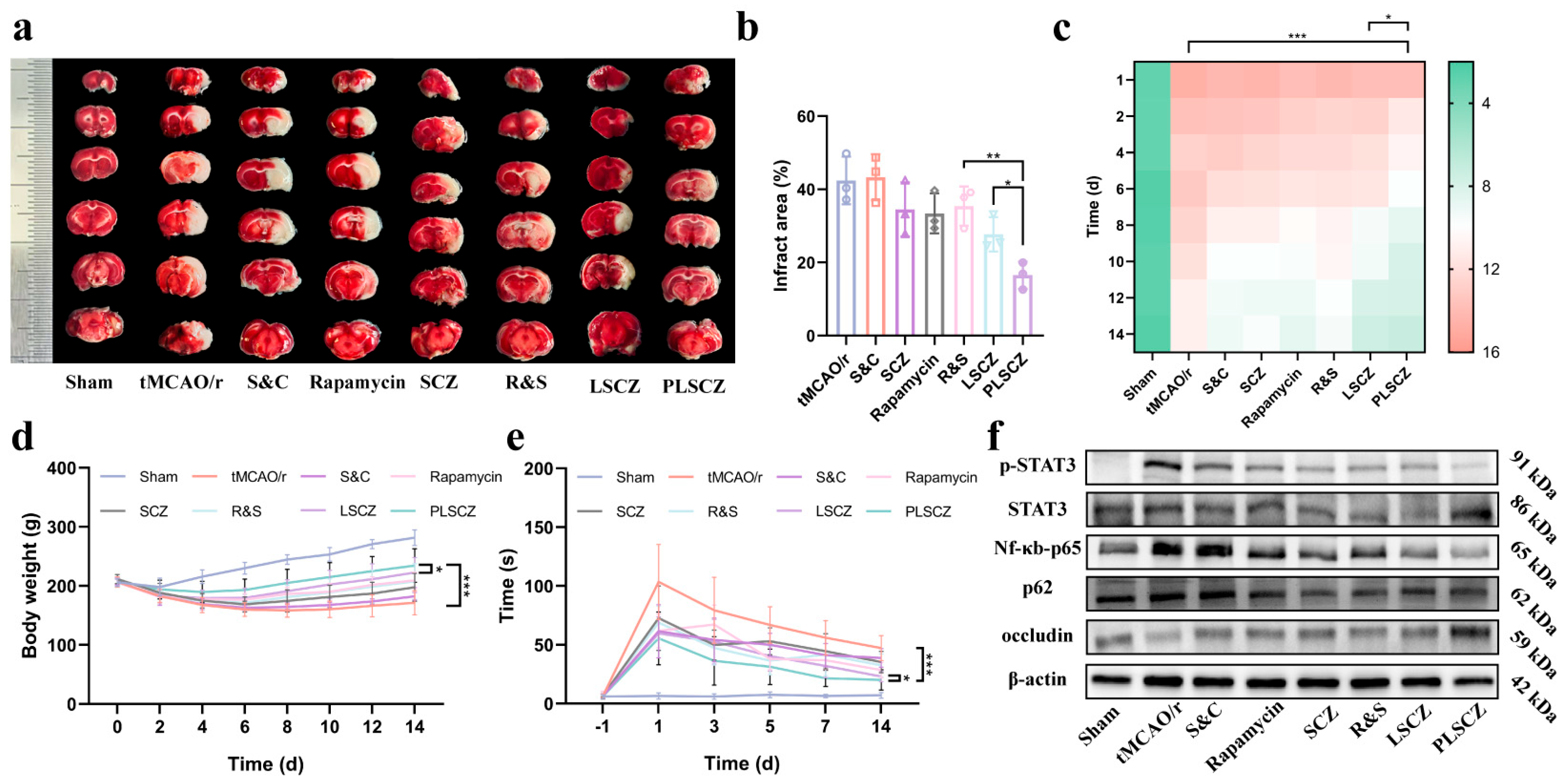 - Longa, E.Z.; Weinstein, P.R.; Carlson, S.; Cummins, R. Reversible Middle Cerebral Artery Occlusion without Craniectomy in Rats. Stroke 1989, 20, 84–91. [Google Scholar] [CrossRef]