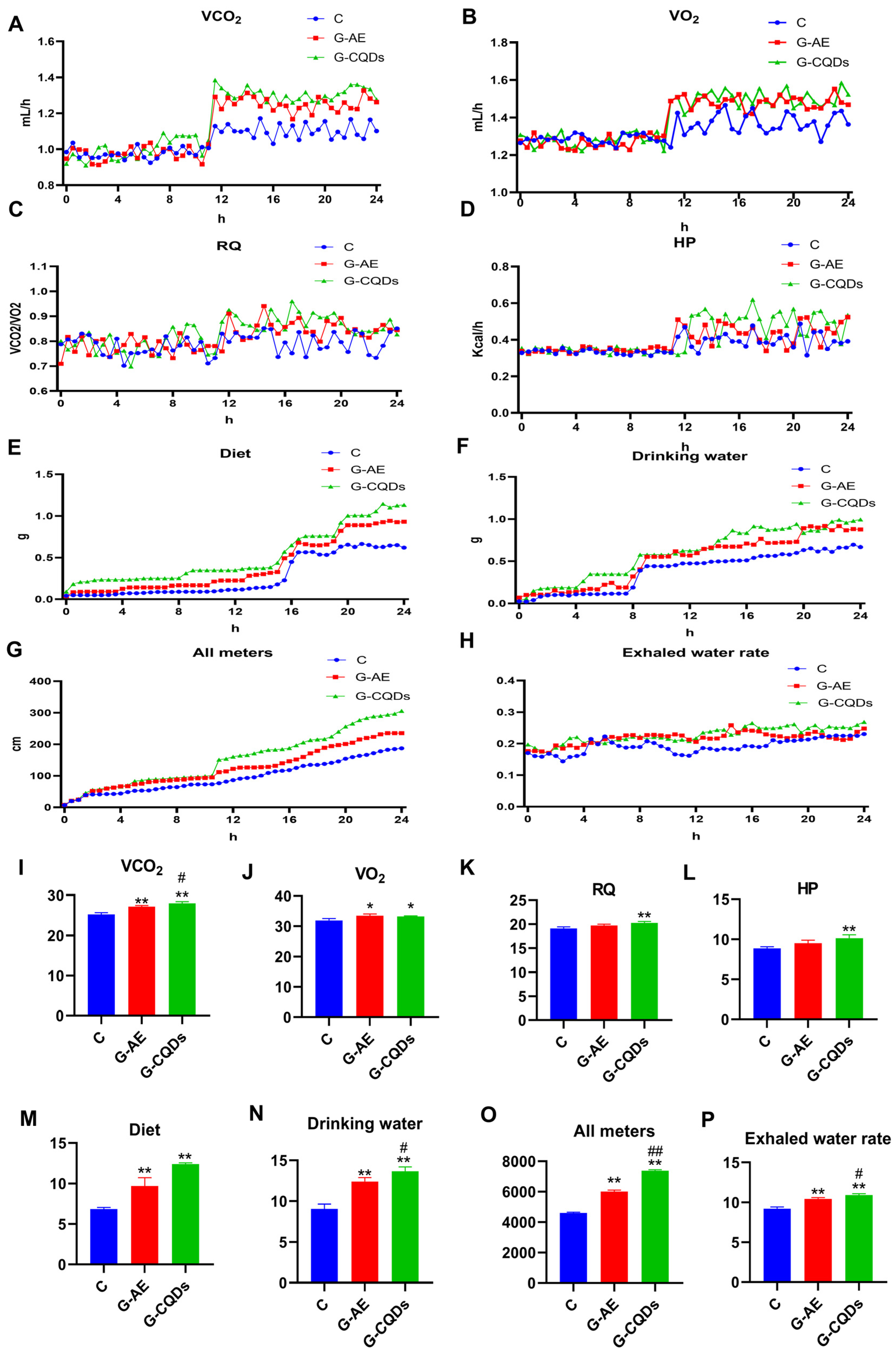 3.2. G-CQDs Elicit Superior Systemic Energy Metabolism Enhancement over G-AE