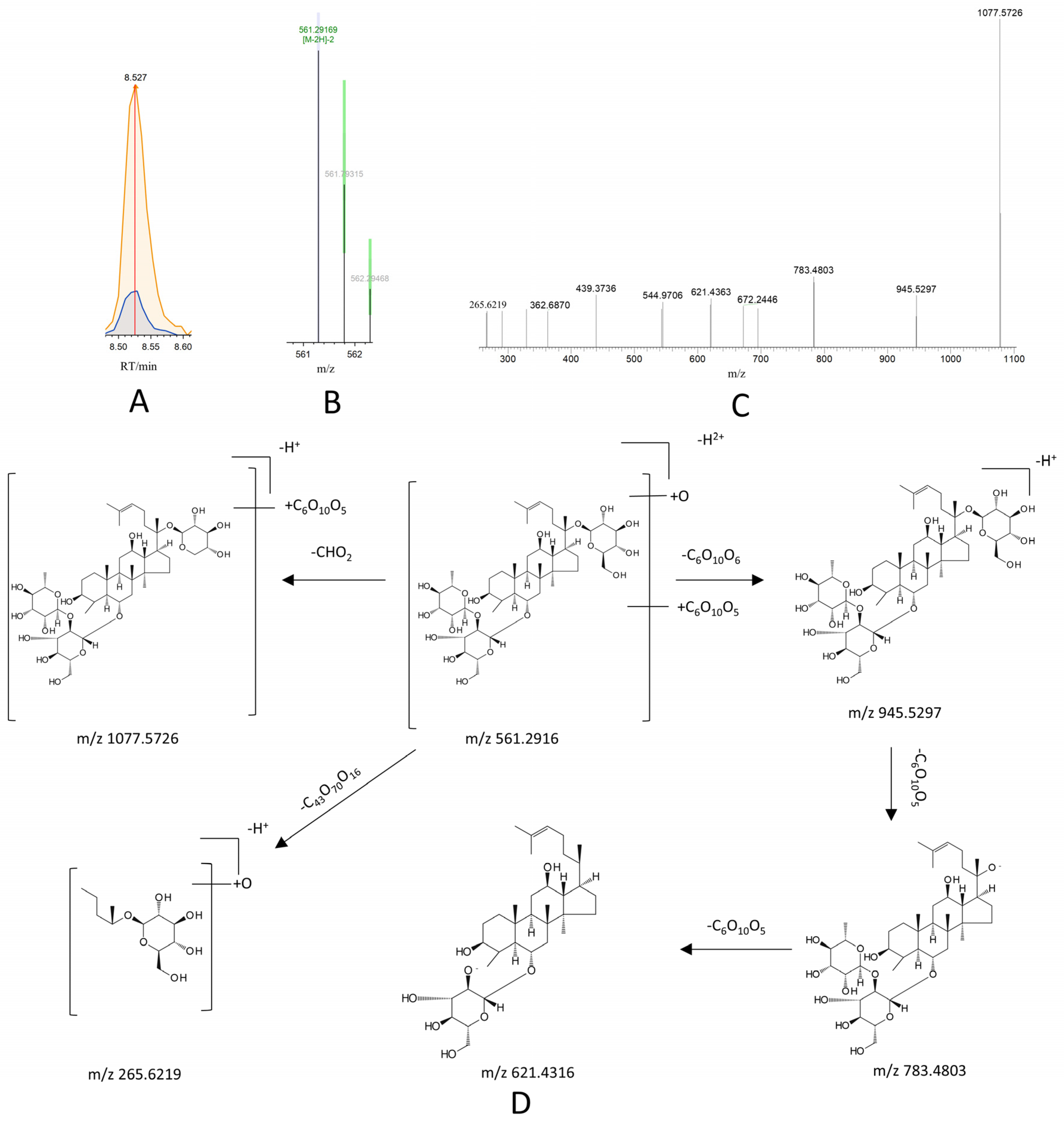 3.3. Comprehensive Mass Spectrometry Profiling Identifies 110 Chemical Constituents in G-CQDs’ Nanocomplex