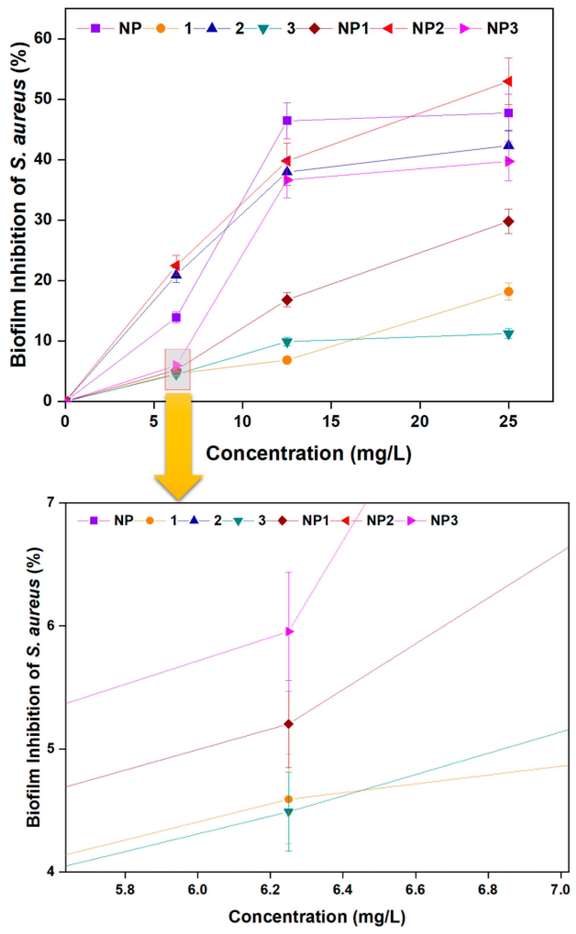 3.3.2. Biofilm Inhibition Activity