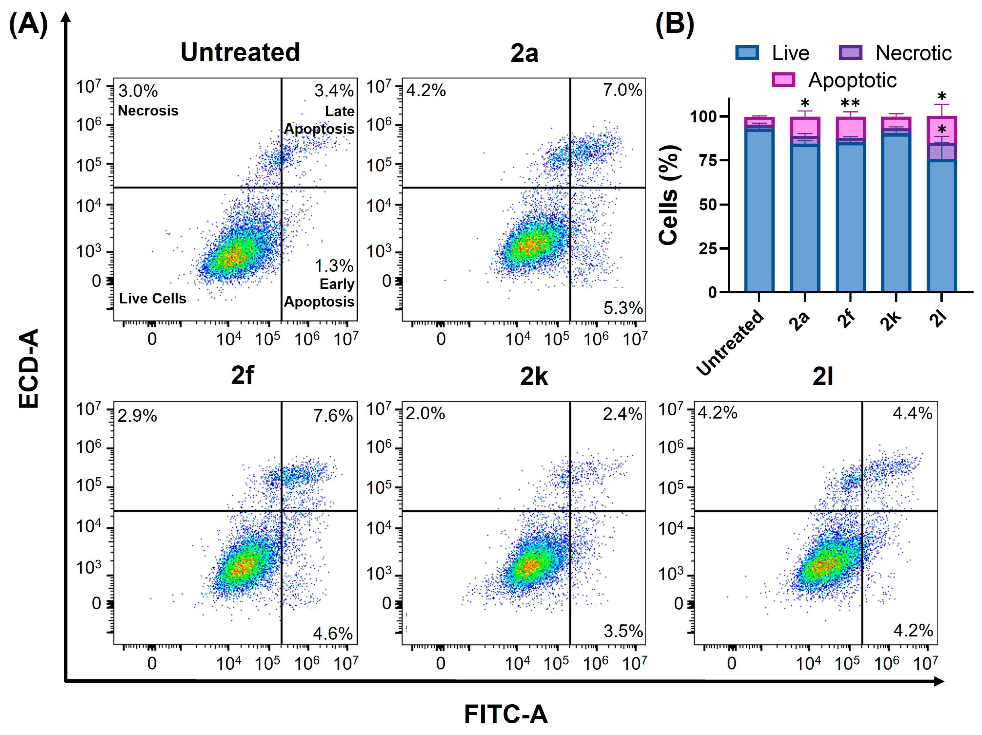 | 2l | 14.2 ± 2.1 | 5.0 ± 0.6 | 45.4 ± 14.2 | 9.0 |