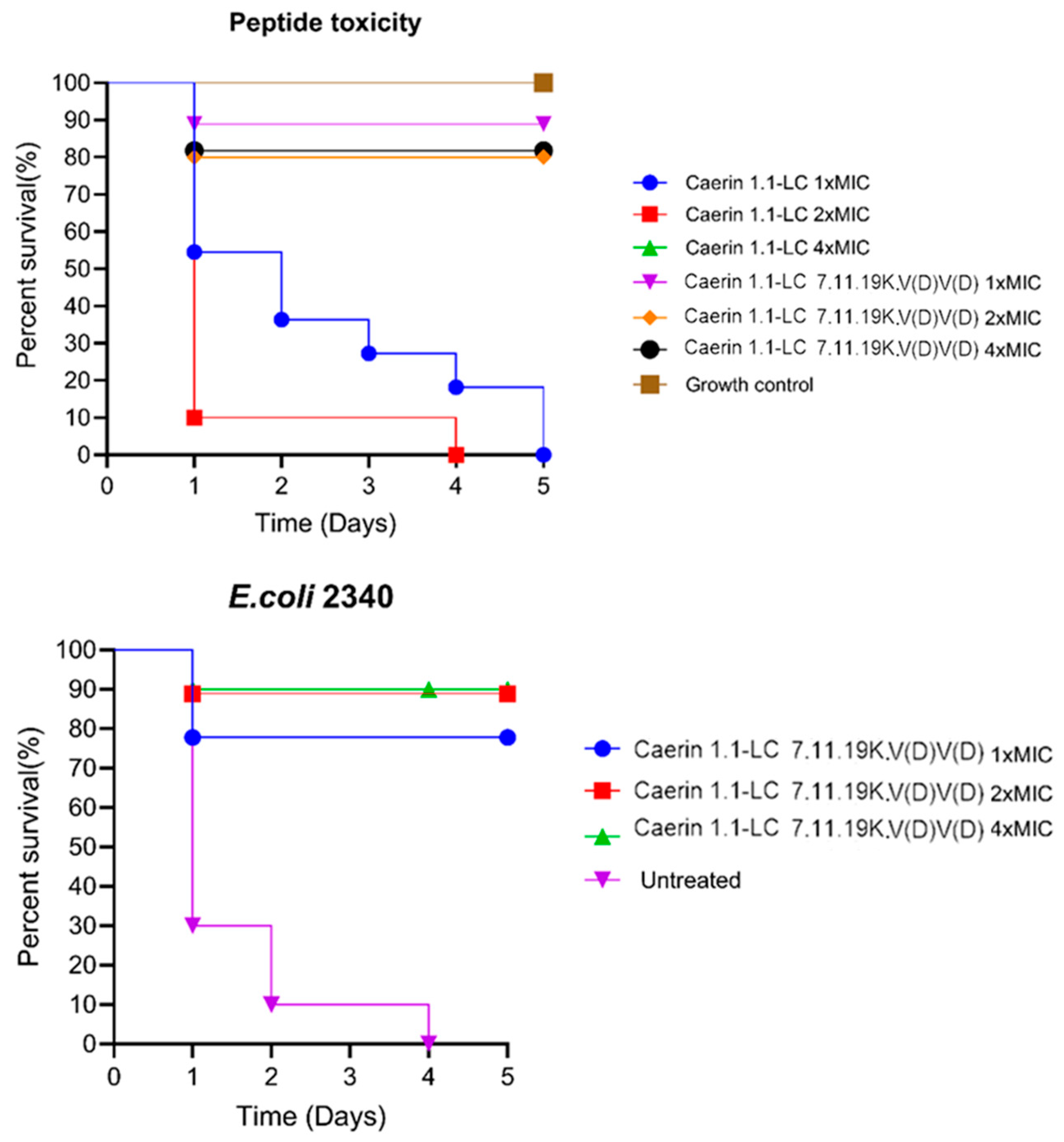 | Caerin 1.1-LC 11K.19K.PKAVP | GLLSVLGSLKKIVPKAVPKIAEKL-NH2 |