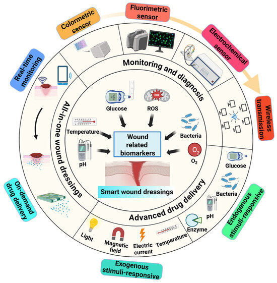 - Ehtesabi, H.; Kalji, S.-O.; Movsesian, L. Smartphone-based wound dressings: A mini-review. Heliyon 2022, 8, e09876. [Google Scholar] [CrossRef]