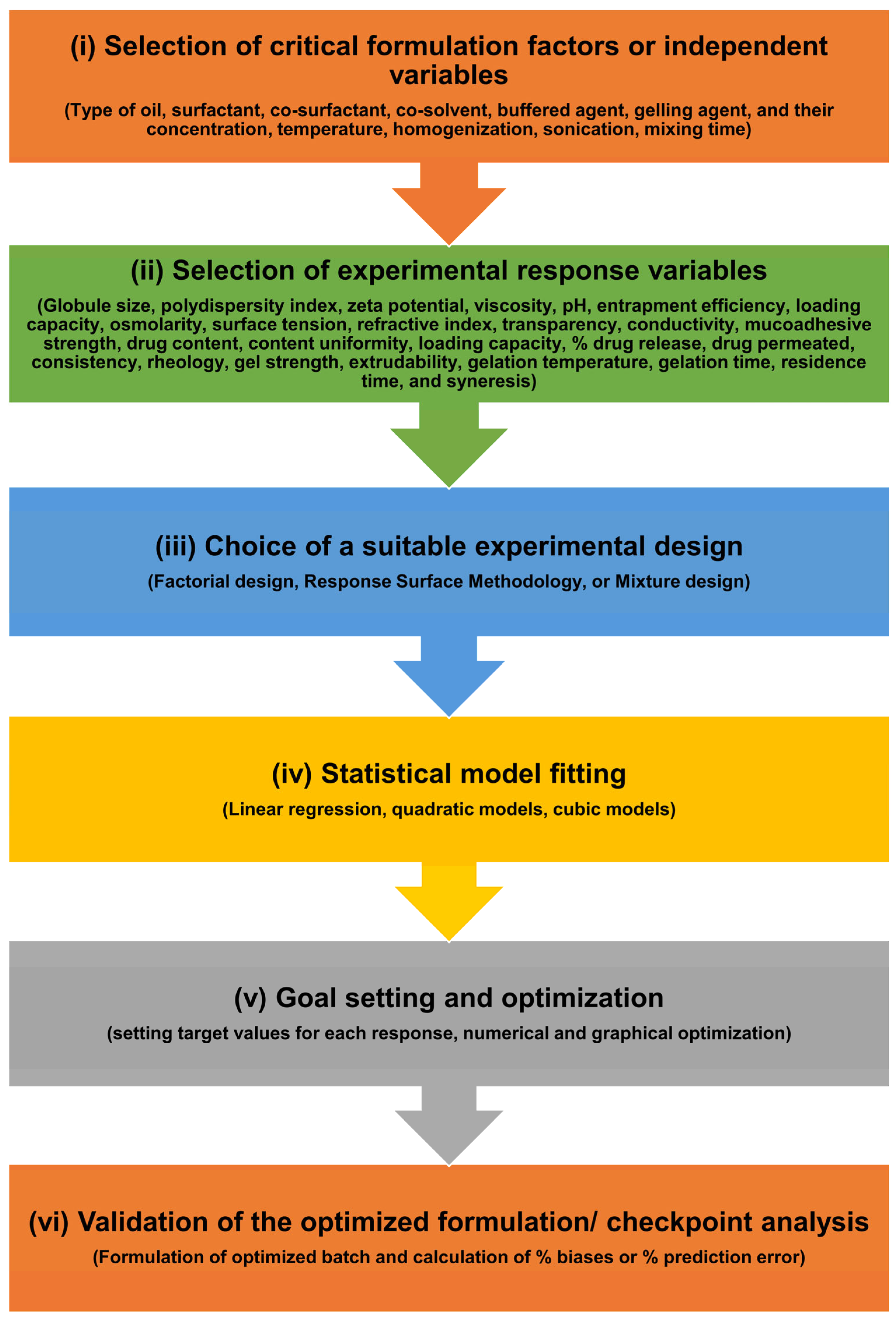 | Zeta potential | Greater than ±30 mV | Offers more repulsive force between globules, avoids aggregation/coalescence, and offers prolonged stability | [84] |