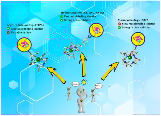 - Price, E.W.; Orvig, C. Matching chelators to radiometals for radiopharmaceuticals. Chem. Soc. Rev. 2014, 43, 260–290. [Google Scholar] [CrossRef]