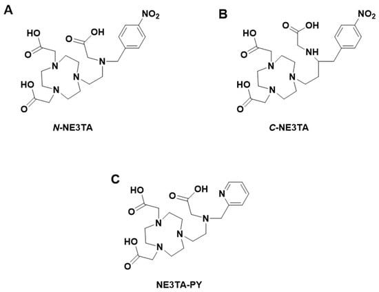 Structures of (A) N-NE3TA; (B) C-NE3TA; (C) C-NE3TA-PY.