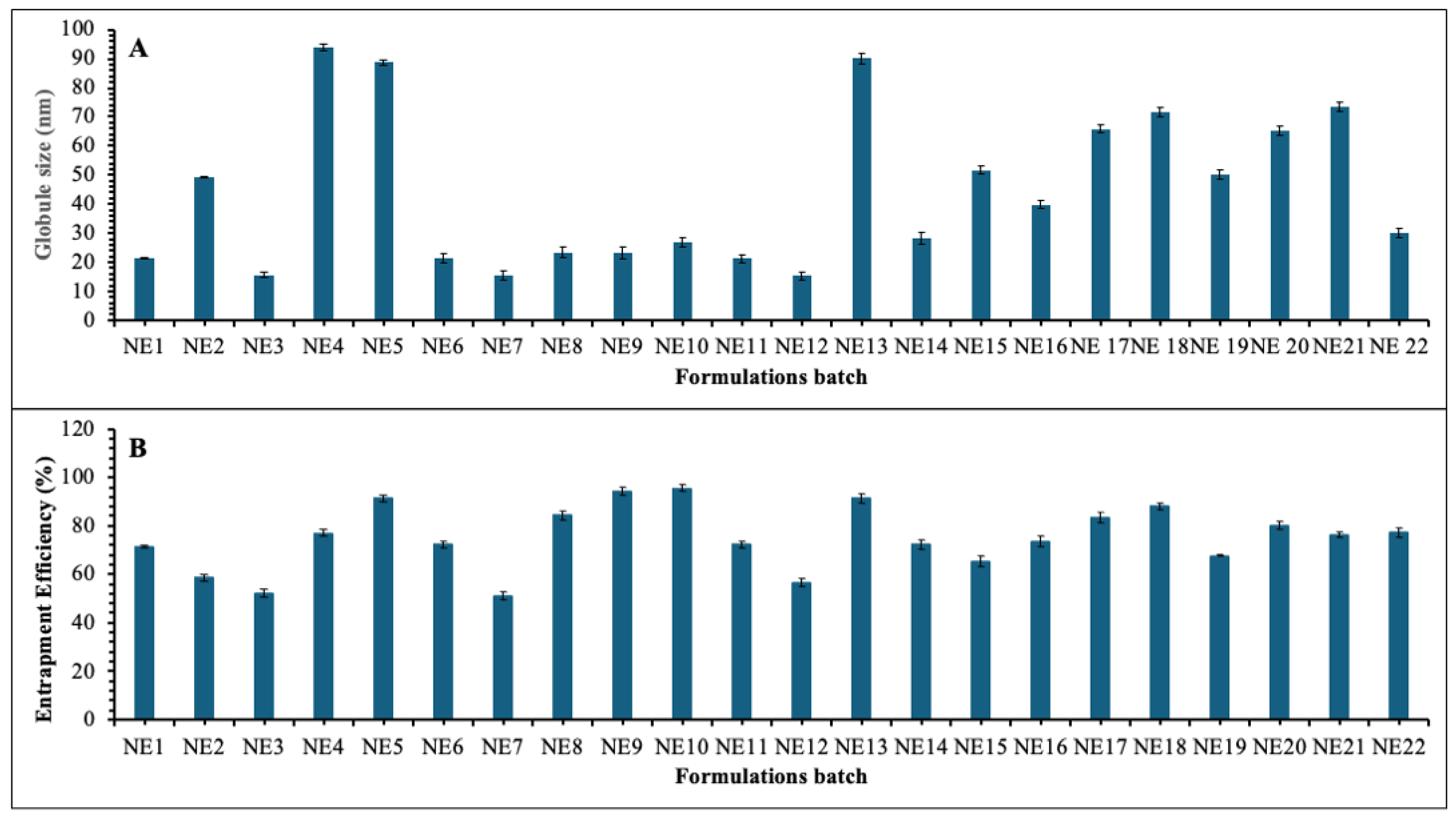 2.4. Characterization of Batches of EPL Loaded Nanostructured Lipid Carrier