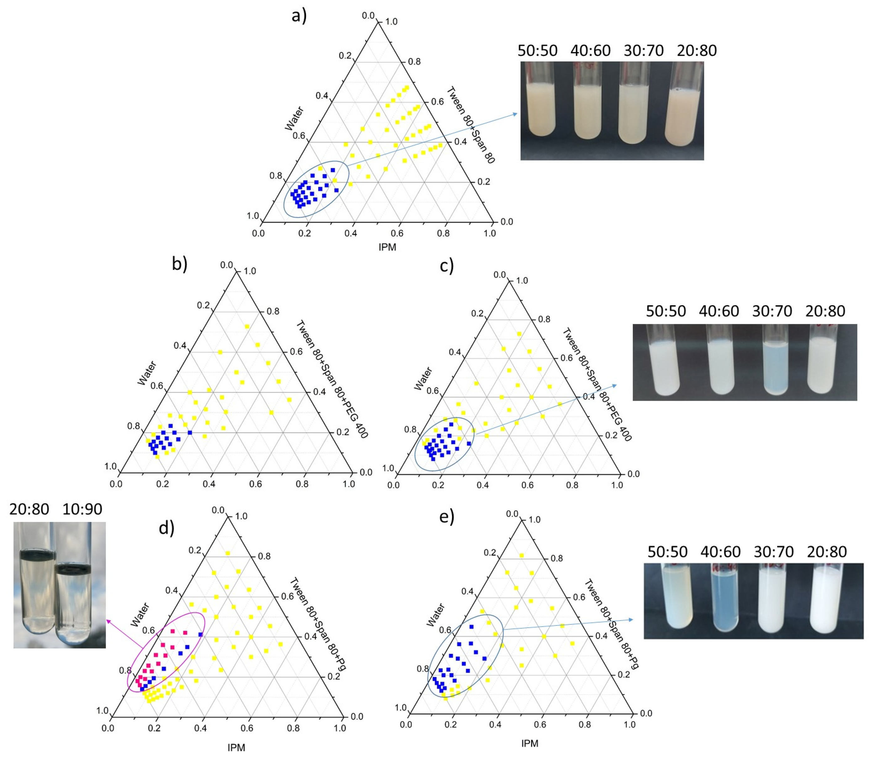 3.1.2. Phase Behavior of Nanoemulsions
