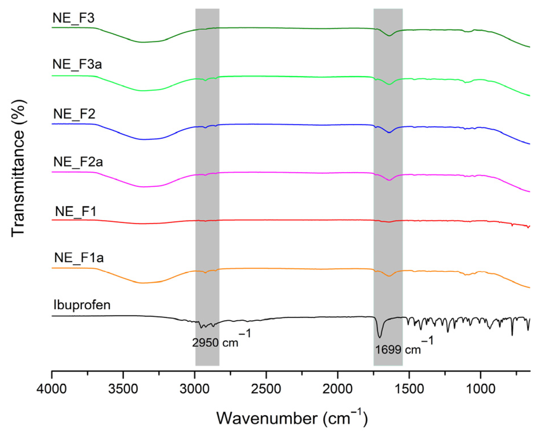 3.1.3. Physico-Chemical Properties of Placebo and Ibuprofen-Loaded Nanoemulsions