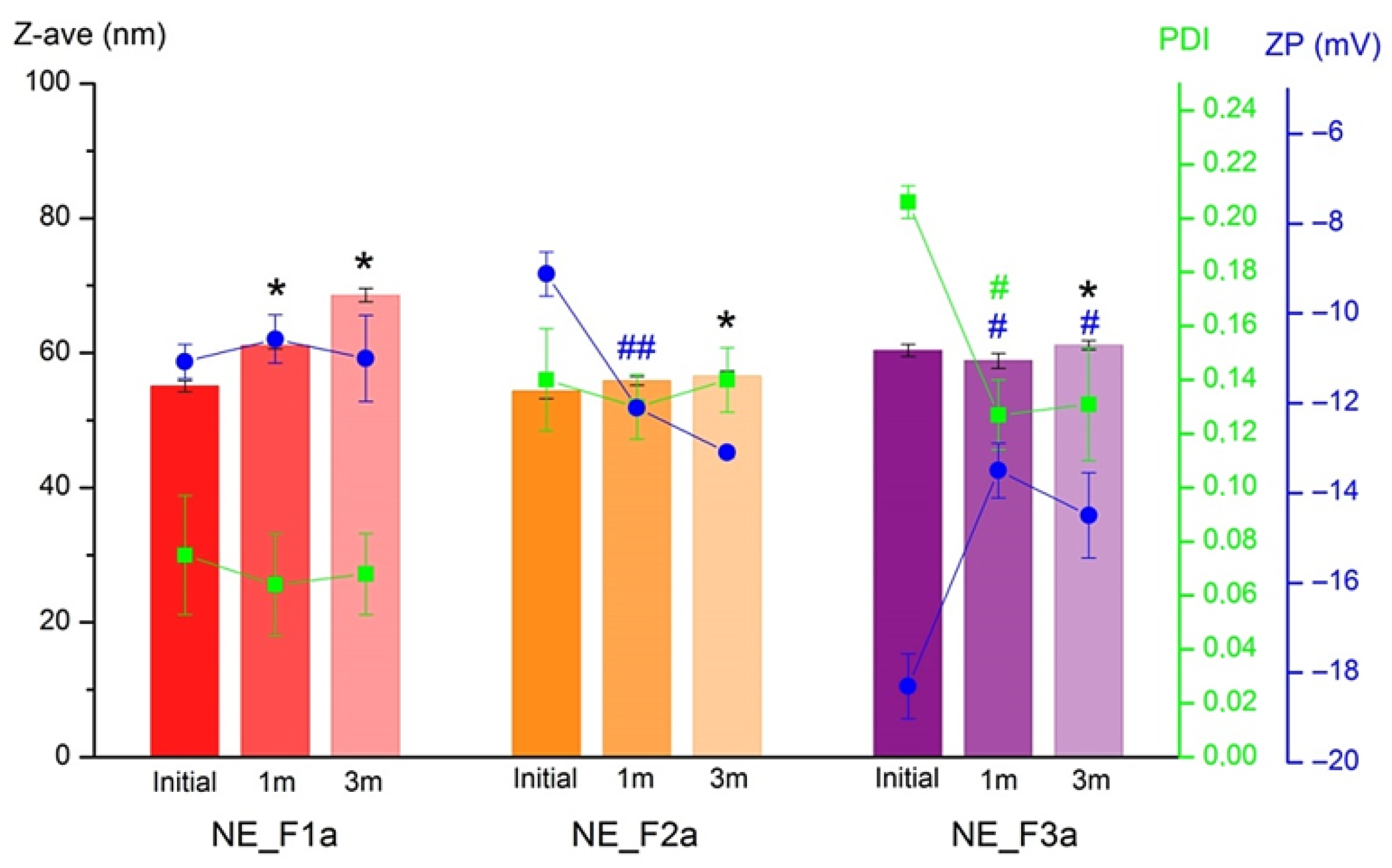 | NE_F3 | 108.40 ± 0.45 c | 0.257 ± 0.003 a | −25.80 ± 0.70 | 5.84 ± 0.04 | 152.37 ± 0.78 c | |