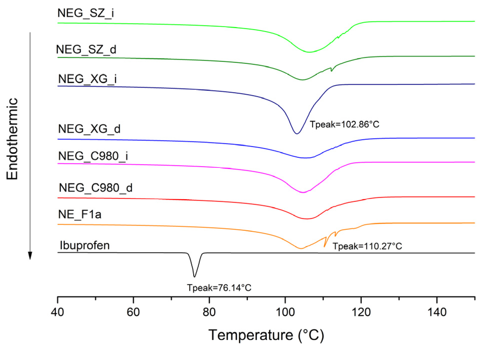 - Lerdkanchanaporn, S. A thermal analysis study of ibuprofen and starch mixtures using simultaneous TG–DTA. Thermochim. Acta 1999, 340, 131–138. [Google Scholar] [CrossRef]