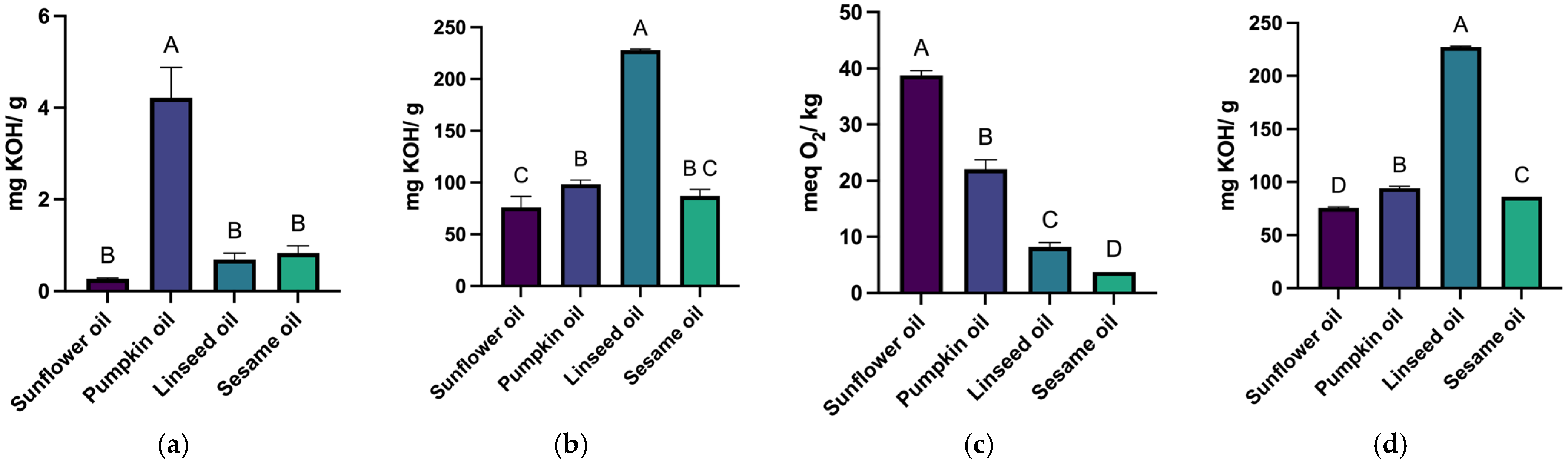 2.2. Physicochemical Evaluation of Fatty Oil Vehicles