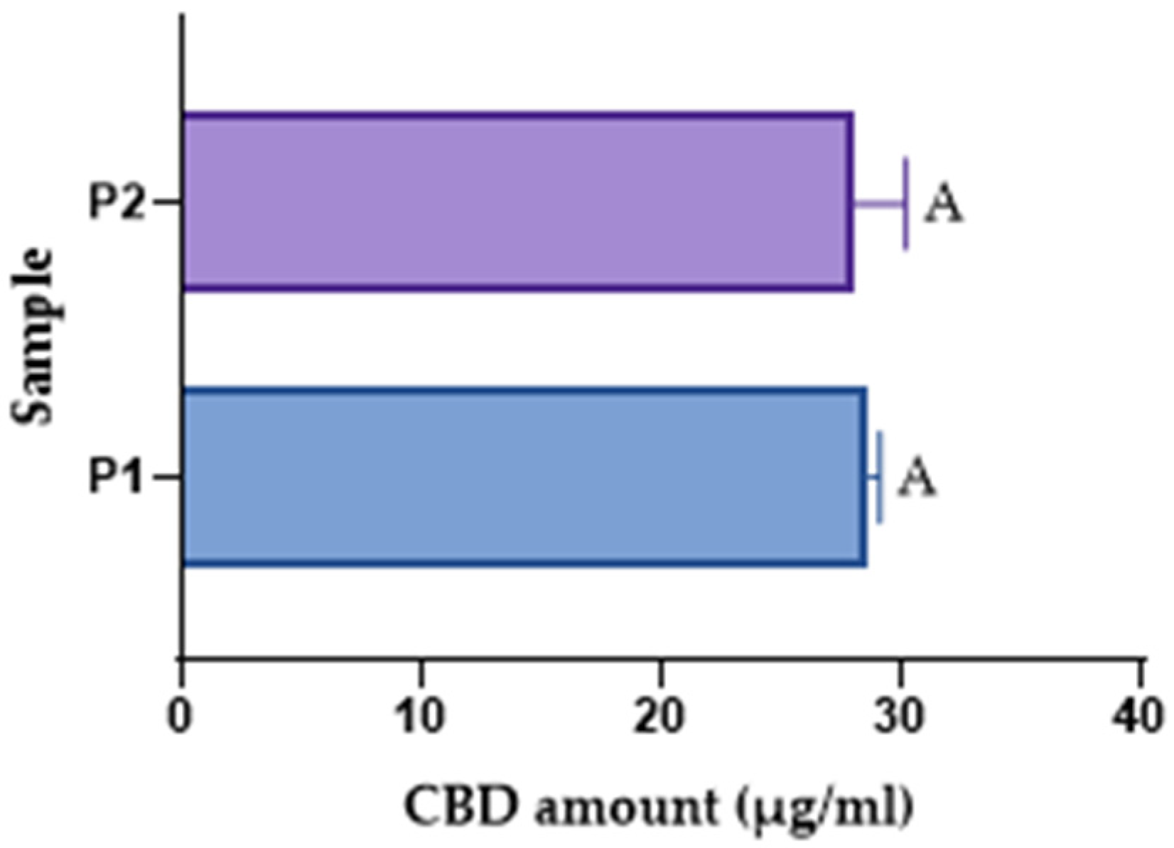 The amount of CBD was determined using a previously validated chromatographic method (HPLC), with the analytical performance assessment detailed in