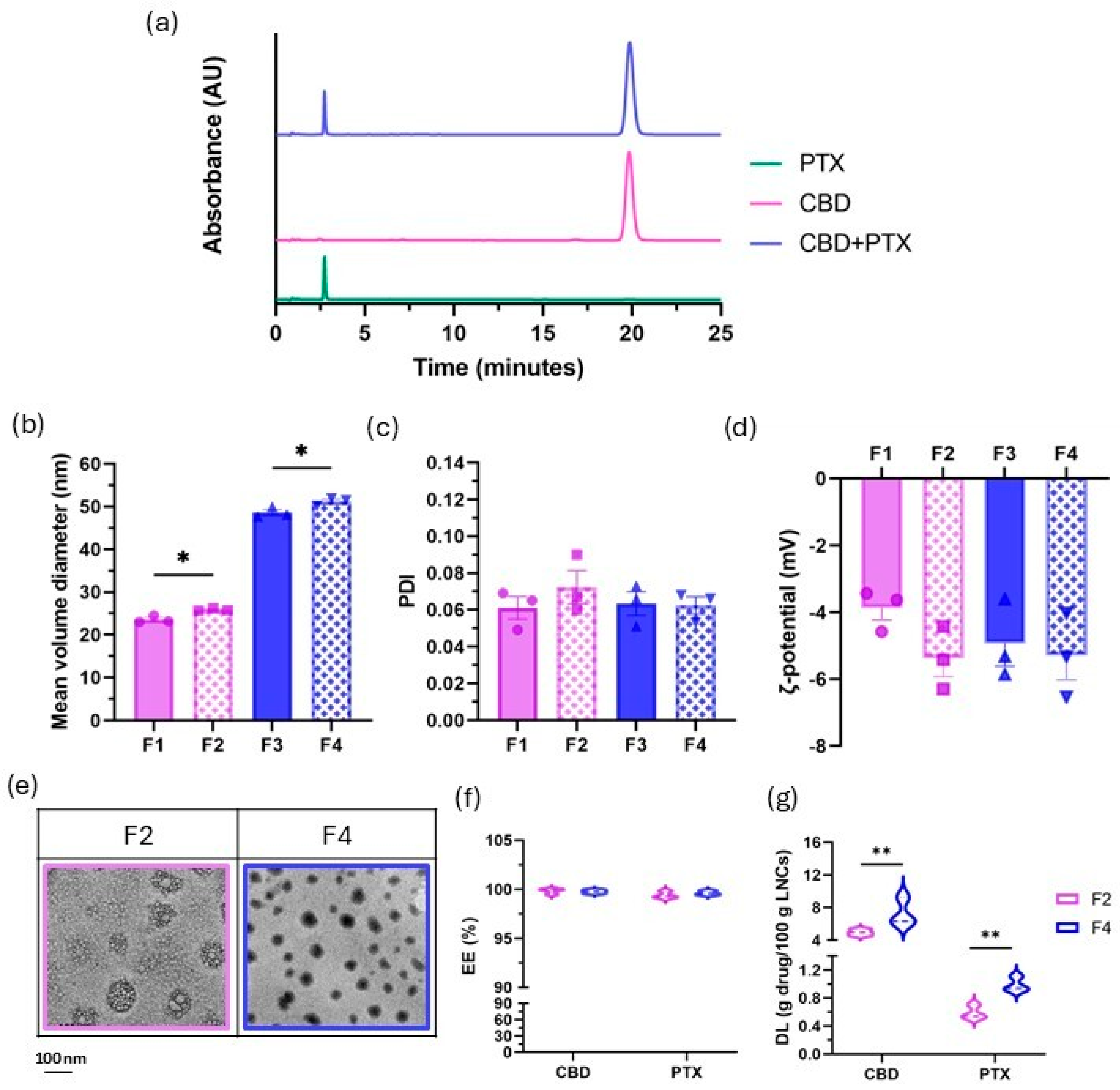 2.6.2. CBD and PTX Co-Loaded LNCs