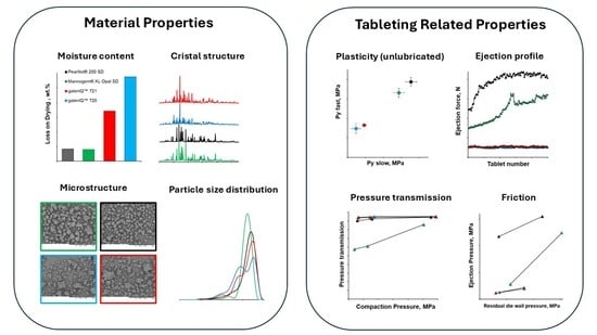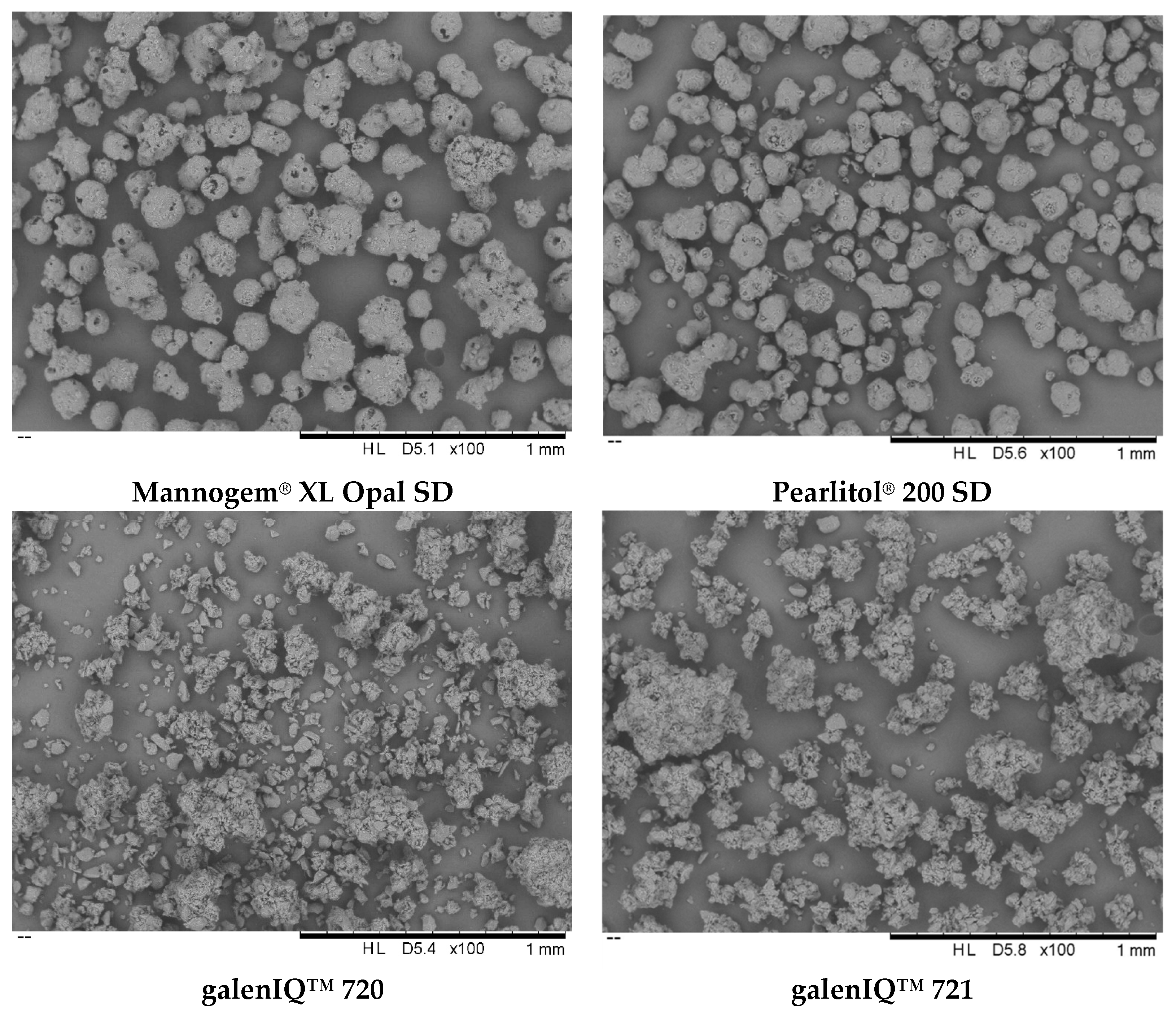 - Liu, J.; Klinzing, G.R.; Nie, H. Effect of Material Properties and Variability of Mannitol on Tablet Formulation Development. Pharm. Res. 2023, 40, 2071–2085. [Google Scholar] [CrossRef]