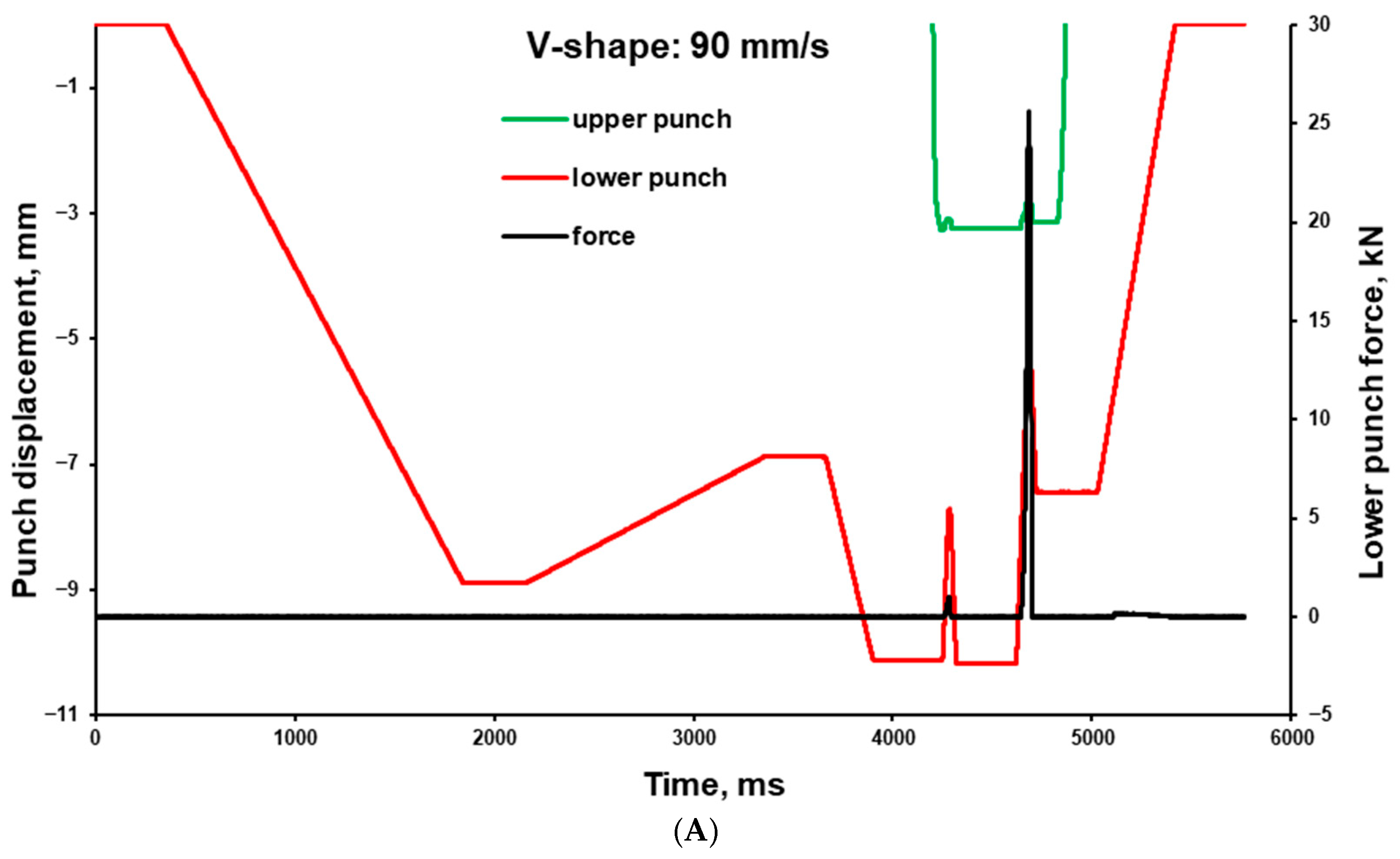 - Roberts, R.J.; Rowe, R.C. The effect of punch velocity on the compaction of a variety of materials. J. Pharm. Pharmacol. 1985, 37, 377–384. [Google Scholar] [CrossRef]