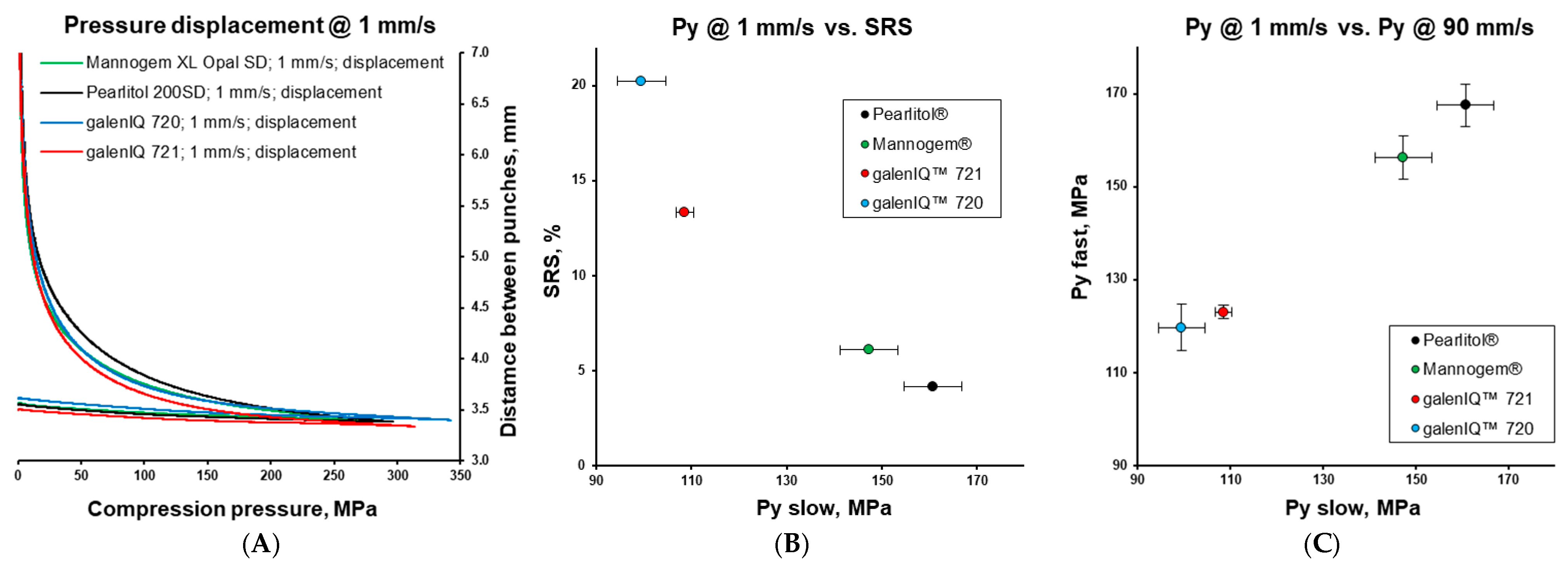 - Vreeman, G.; Sun, C.C. Mean yield pressure from the in-die Heckel analysis is a reliable plasticity parameter. Int. J. Pharm. X 2021, 3, 100094. [Google Scholar] [CrossRef]