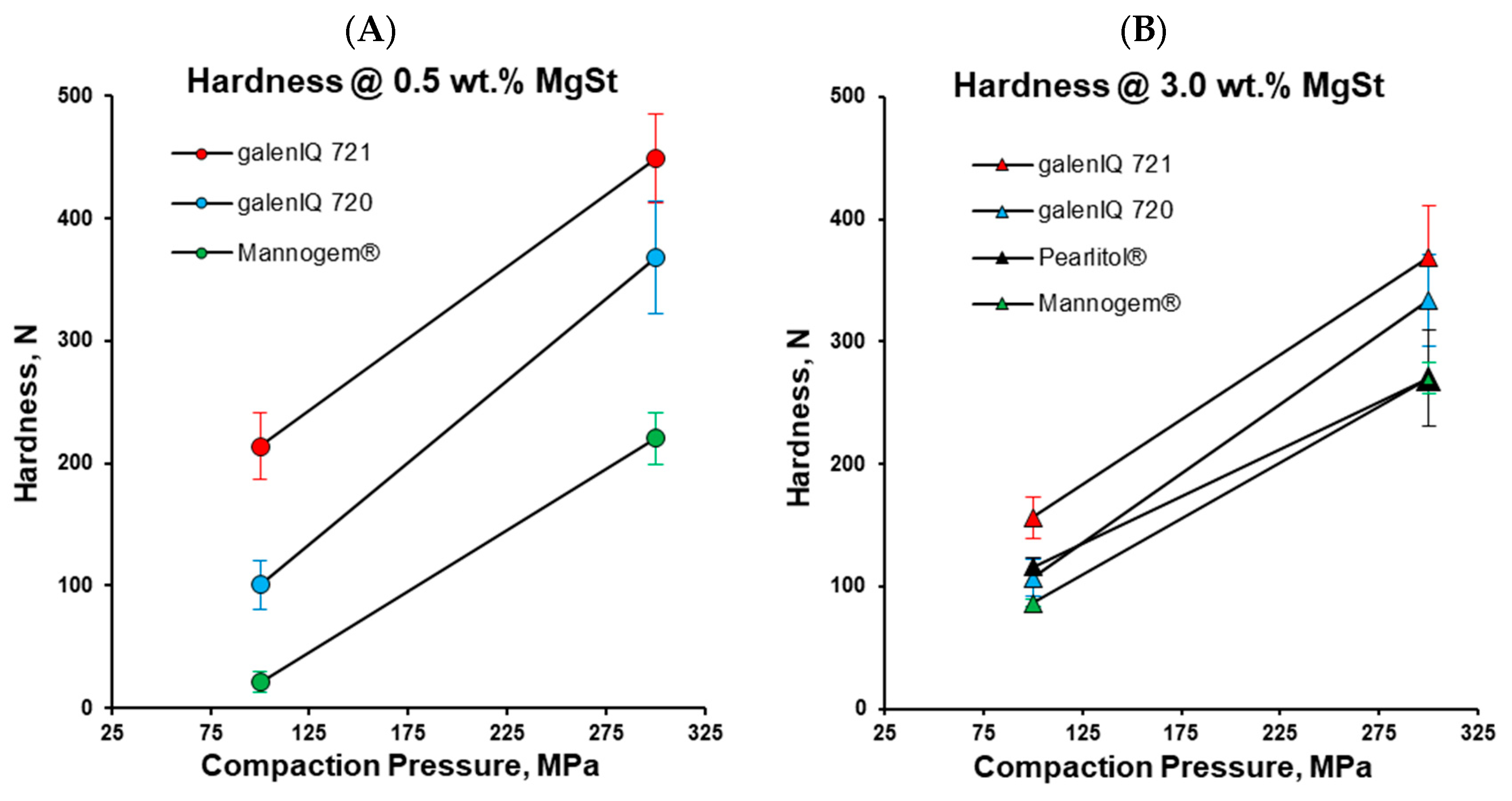 | 0.5 wt.% MgSt | 3.0 wt.% MgSt | 0.5 wt.% MgSt | 3.0 wt.% MgSt | |||||