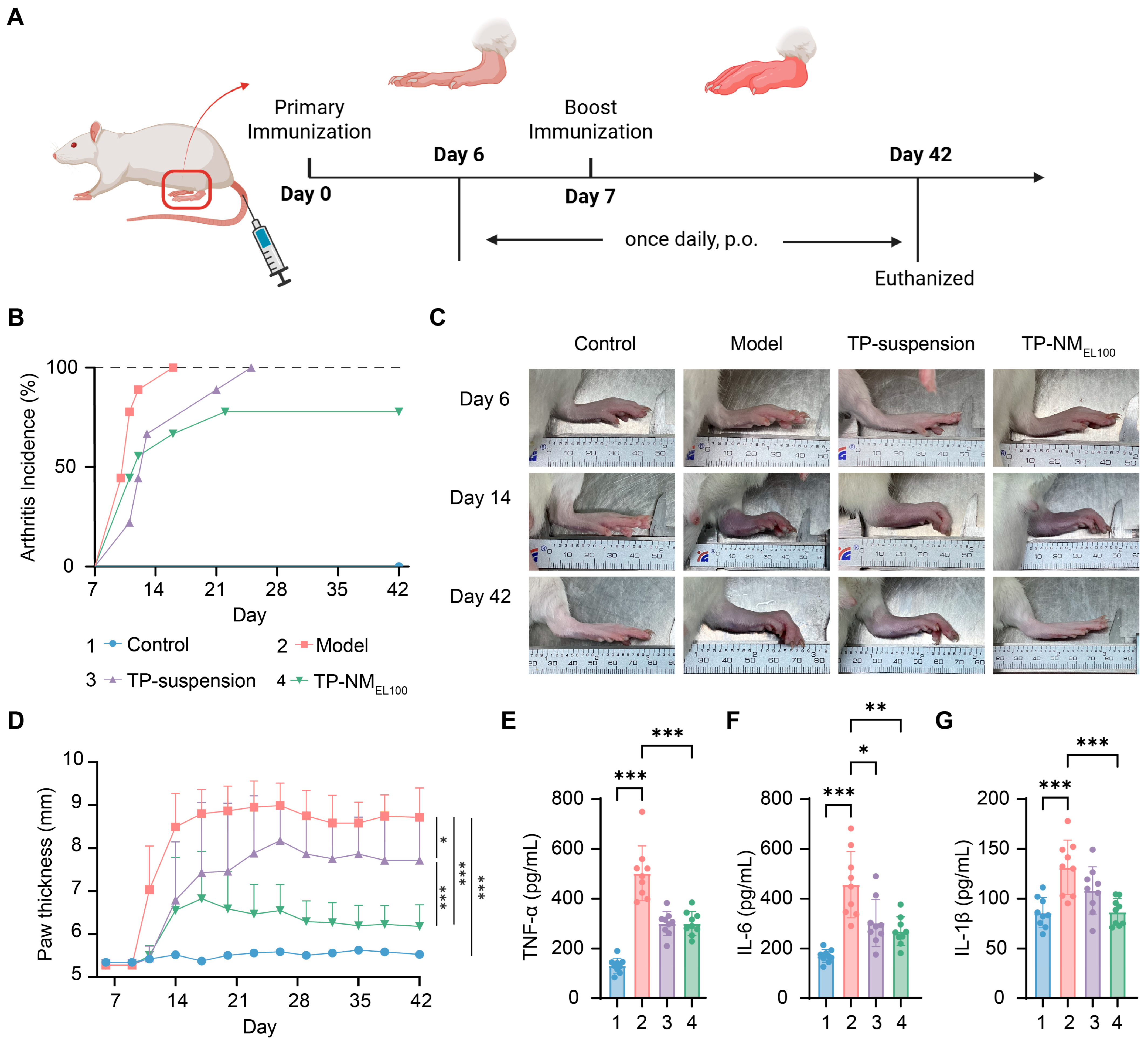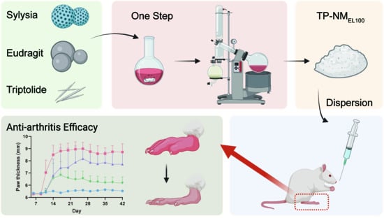 APA StyleLiang, Y., Li, M., Zhou, Q., Liu, C., Lin, L., Yang, L., & Dai, W. (2025). Preparation, Characterization, and In Vivo Evaluation of an Oral Triptolide Nanomatrix System for Rheumatoid Arthritis Therapy. Pharmaceutics, 17(12), 1567. https://doi.org/10.3390/pharmaceutics17121567