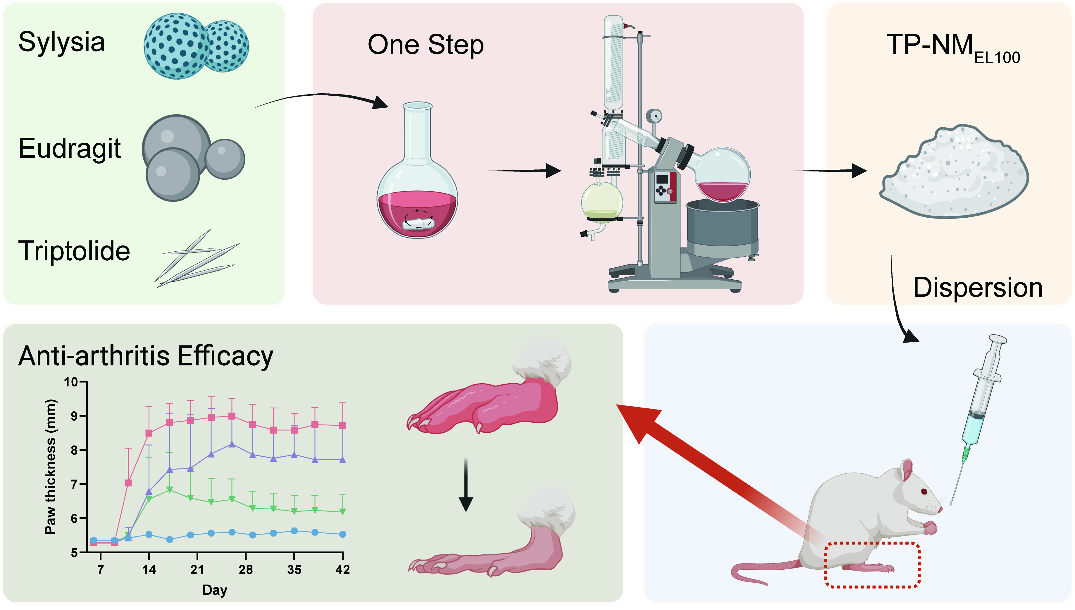 Liang, Y.; Li, M.; Zhou, Q.; Liu, C.; Lin, L.; Yang, L.; Dai, W. Preparation, Characterization, and In Vivo Evaluation of an Oral Triptolide Nanomatrix System for Rheumatoid Arthritis Therapy. Pharmaceutics 2025, 17, 1567. https://doi.org/10.3390/pharmaceutics17121567