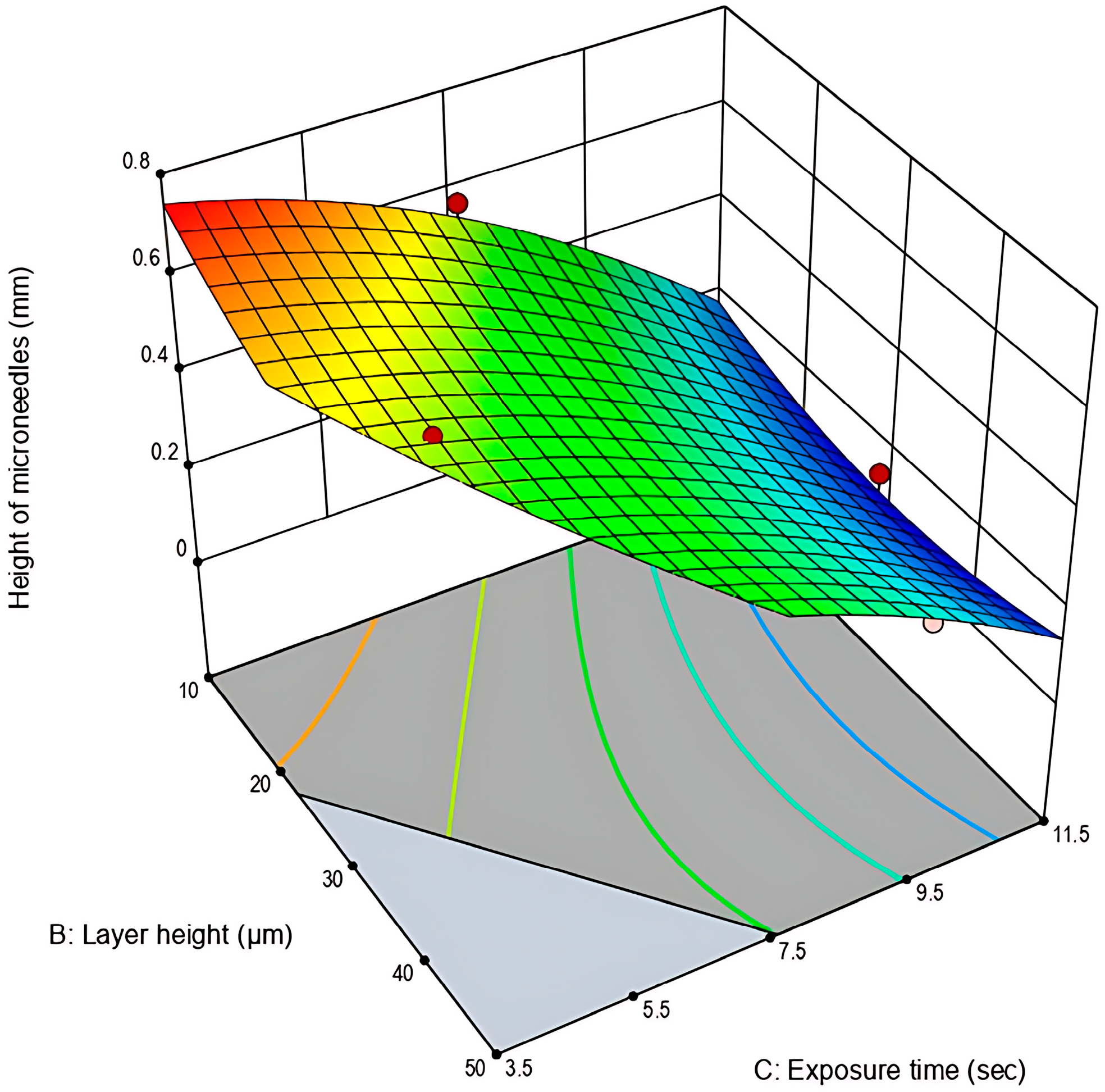3.1.2. Analysis of Response 2: Height of Microneedles (mm)