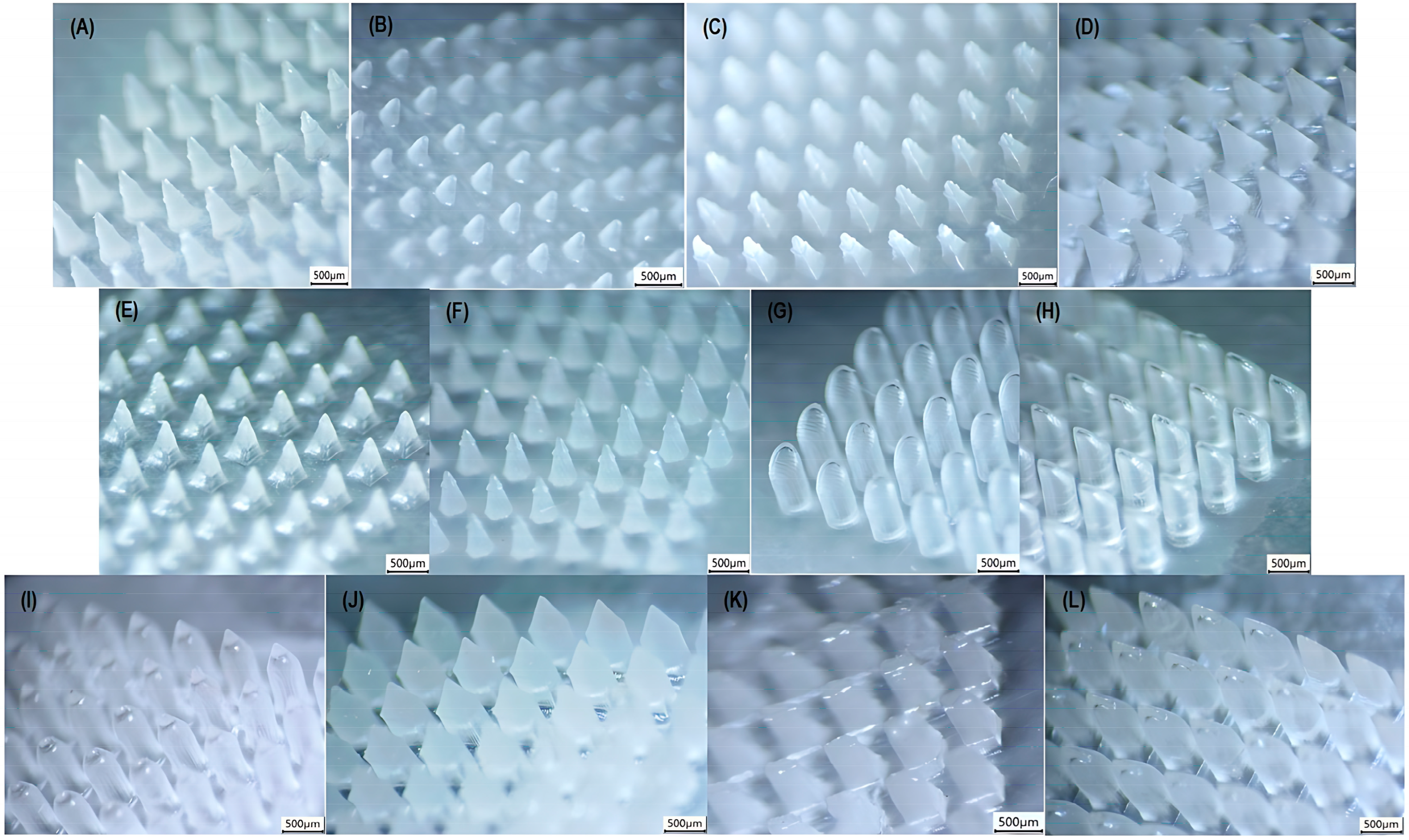 3.3.1. Microscopic Inspection of Microneedle Arrays
