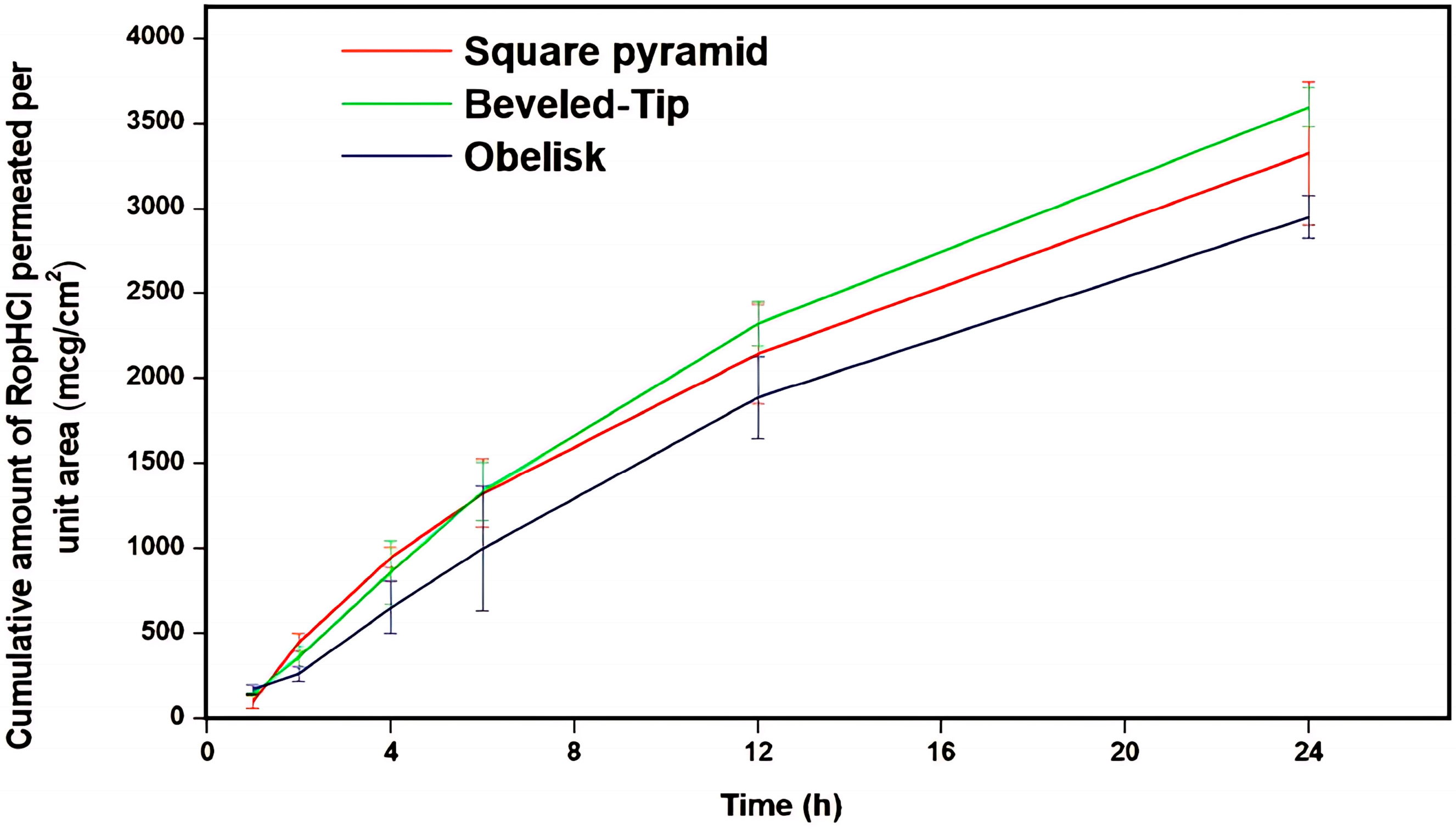 2.7. Performance Study of Microneedle Designs for Adjusting Transdermal Permeation