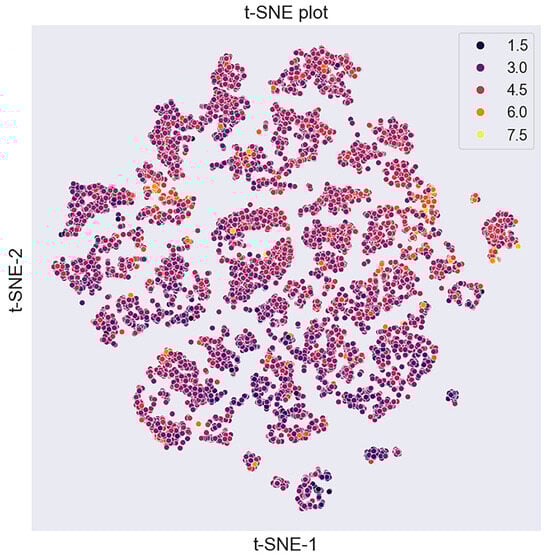 To visualize the chemical space of the dataset, the ChemPlot Python library (v. 1.3.1.) was employed, which facilitates dimensionality reduction and plotting of molecular structures based on SMILES representations [29]. Specifically, t-distributed Stochastic Neighbor Embedding (t-SNE) was applied with tailored similarity metrics, incorporating the (mol/kg) values as the target property for regression analysis.