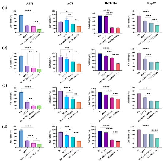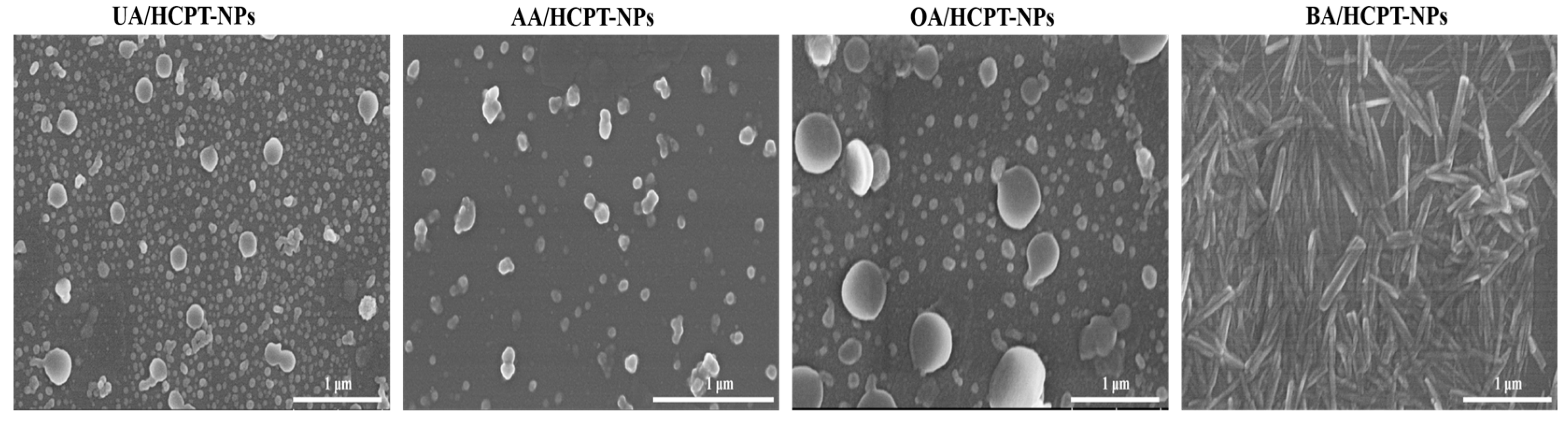 | BA | HCPT | BA + HCPT Mixture | BA/HCPT-NPs | UA | HCPT | UA + HCPT Mixture | UA/HCPT-NPs | Title 1 | Title 2 | Title 3 | ||