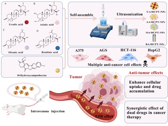 Zhang, T.; Hu, Y.; Yang, W.; Huang, X.; Zhang, L.; Hou, X.; Shen, P.; Jian, R.; Liu, Z.; Pi, J. Preparation and Antitumor Evaluation of Four Pentacyclic Triterpenoids and 10-Hydroxycamptothecin Self-Assembled Nanoparticles. Pharmaceutics 2025, 17, 1577. https://doi.org/10.3390/pharmaceutics17121577