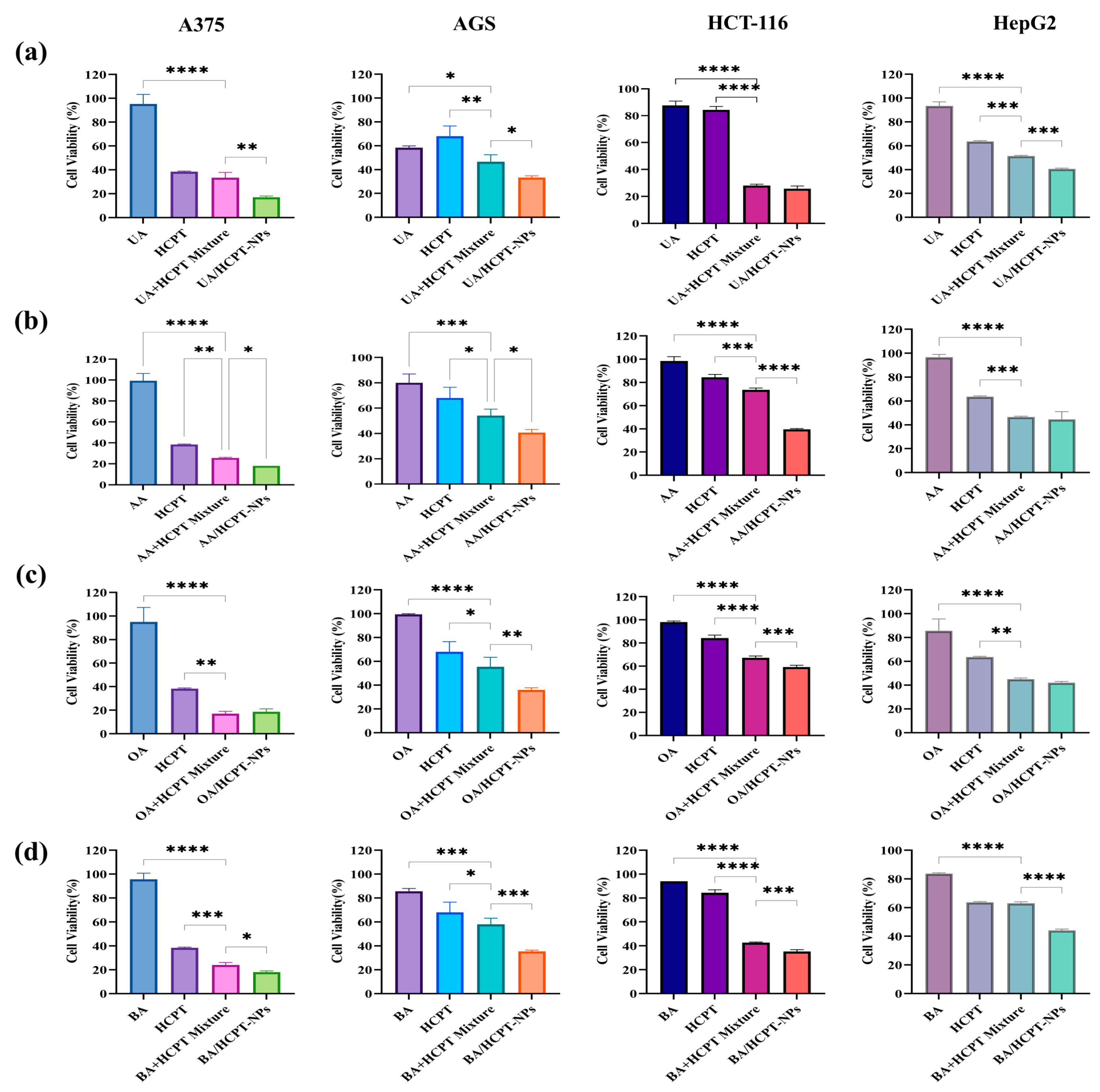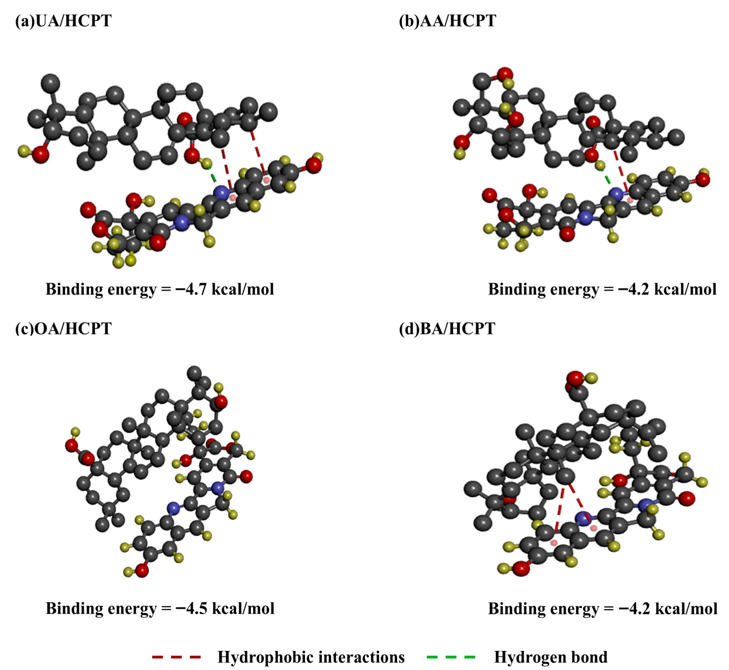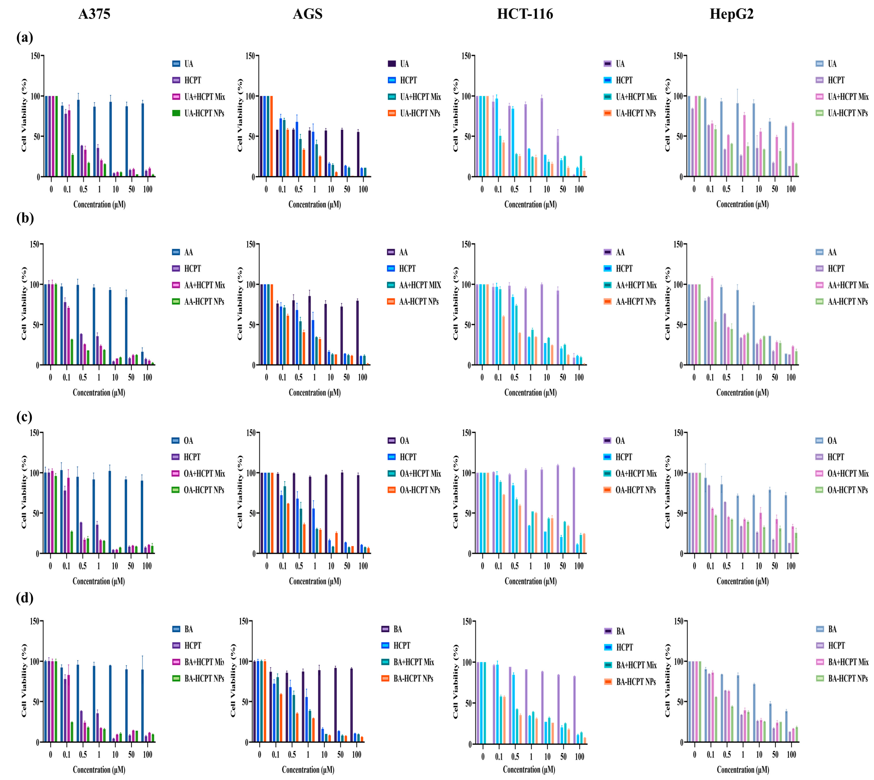 | OA | HCPT | OA + HCPT Mixture | OA/HCPT-NPs | UA | HCPT | UA + HCPT Mixture | UA/HCPT-NPs | Title 1 | Title 2 | Title 3 | ||