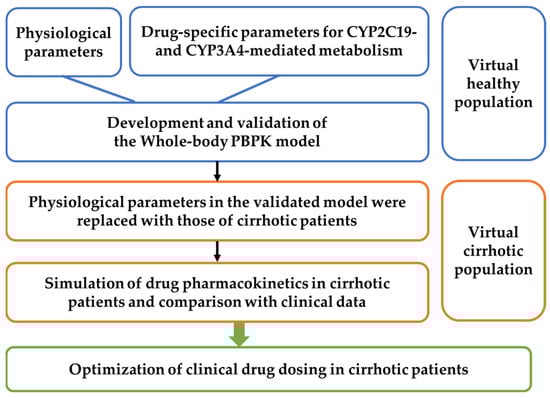 In this study, we developed a PBPK model for PPIs, specifically omeprazole and lansoprazole, which are primarily metabolized by CYP2C19. The model was extended to simulate the pharmacokinetics of drugs metabolized by CYP3A4 in cirrhotic patients and to optimize drug dosing in this population.