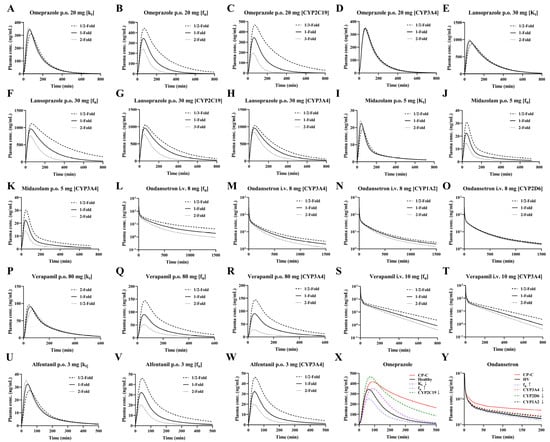 - Wu, F.; Gaohua, L.; Zhao, P.; Jamei, M.; Huang, S.M.; Bashaw, E.D.; Lee, S.C. Predicting nonlinear pharmacokinetics of omeprazole enantiomers and racemic drug using physiologically based pharmacokinetic modeling and simulation: Application to predict drug/genetic interactions. Pharm. Res. 2014, 31, 1919–1929. [Google Scholar] [CrossRef]