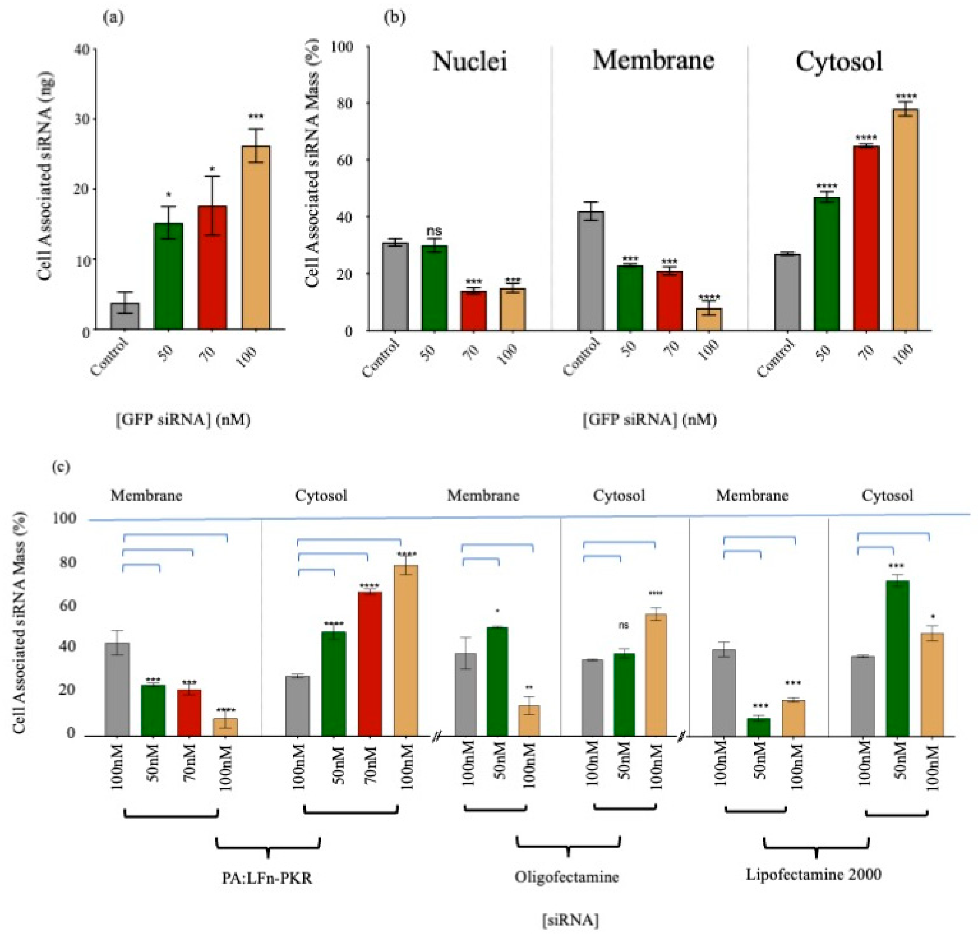 - Hedlund, H.; Du Rietz, H.; Johansson, J.; Zedan, W.; Huang, L.; Wallin, J.; Wittrup, A. Absolute quantification and single-cell dose-response of cytosolic siRNA delivery. Nat. Commun. 2021, 14, 1–75. [Google Scholar] [CrossRef]