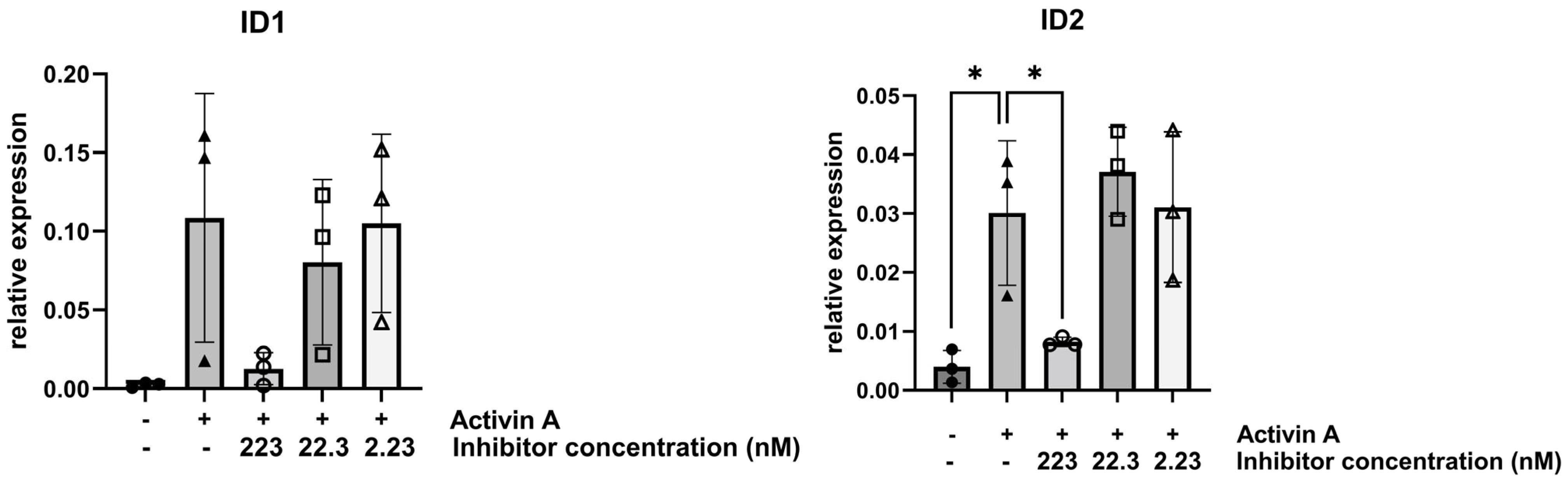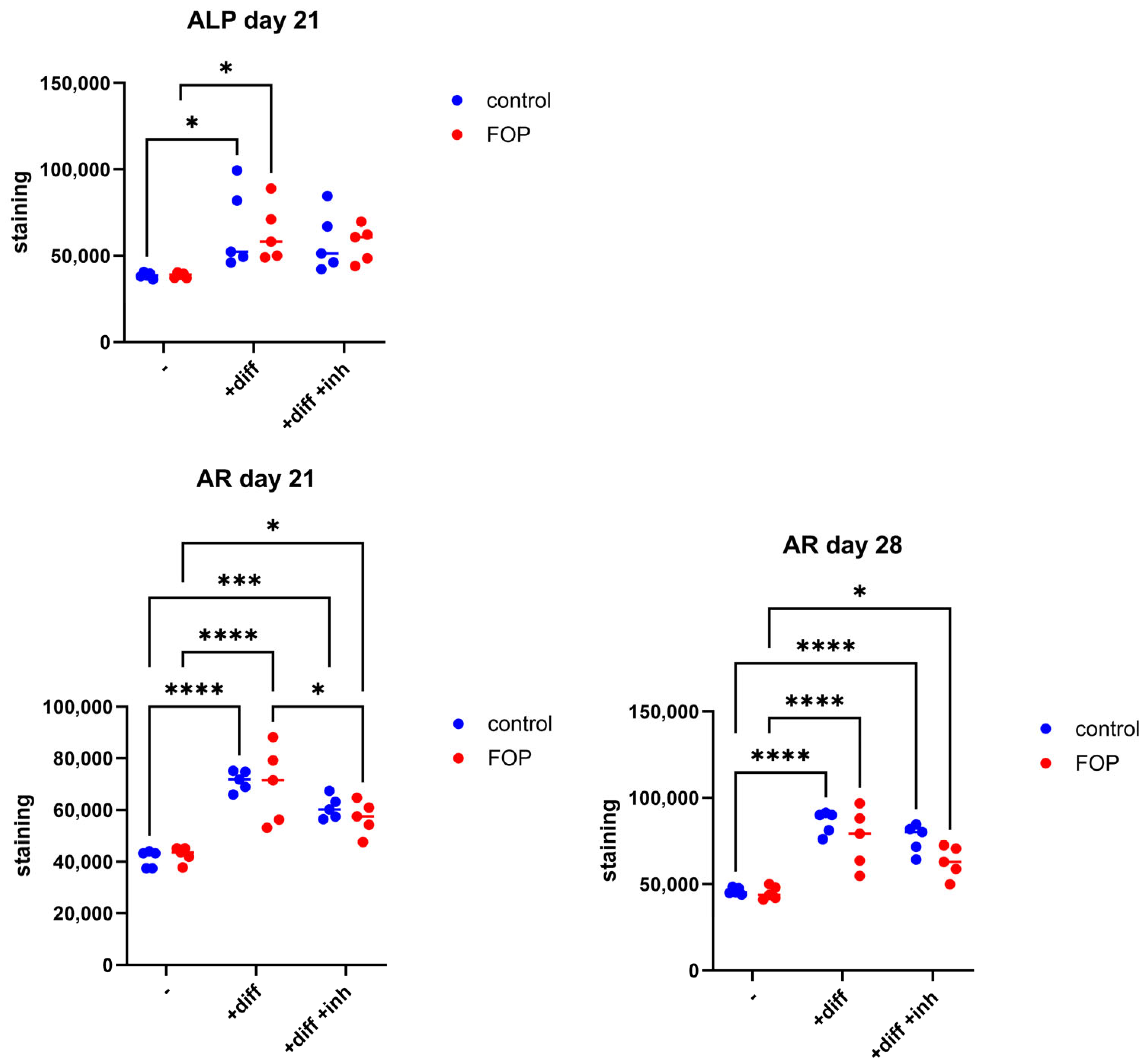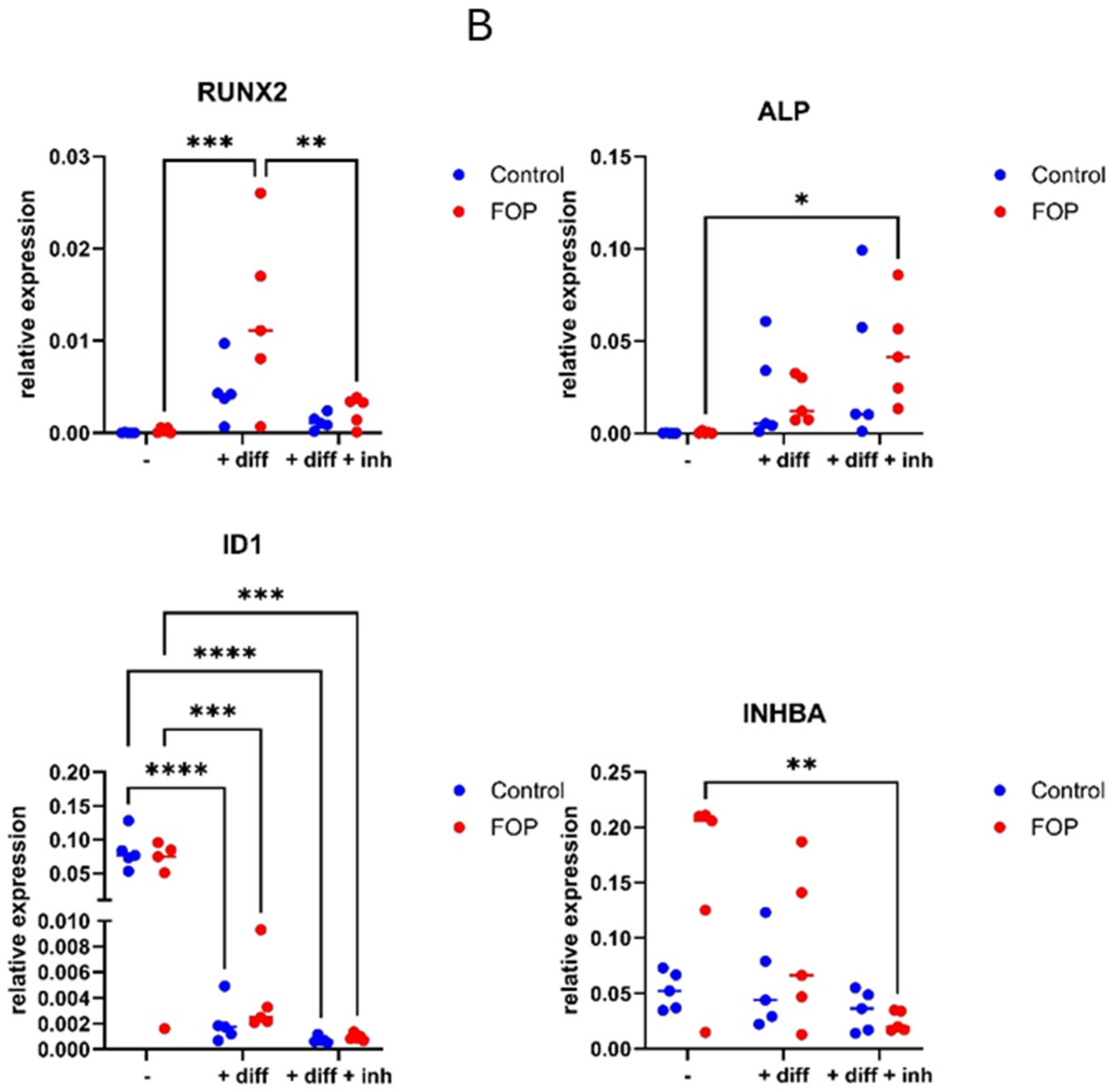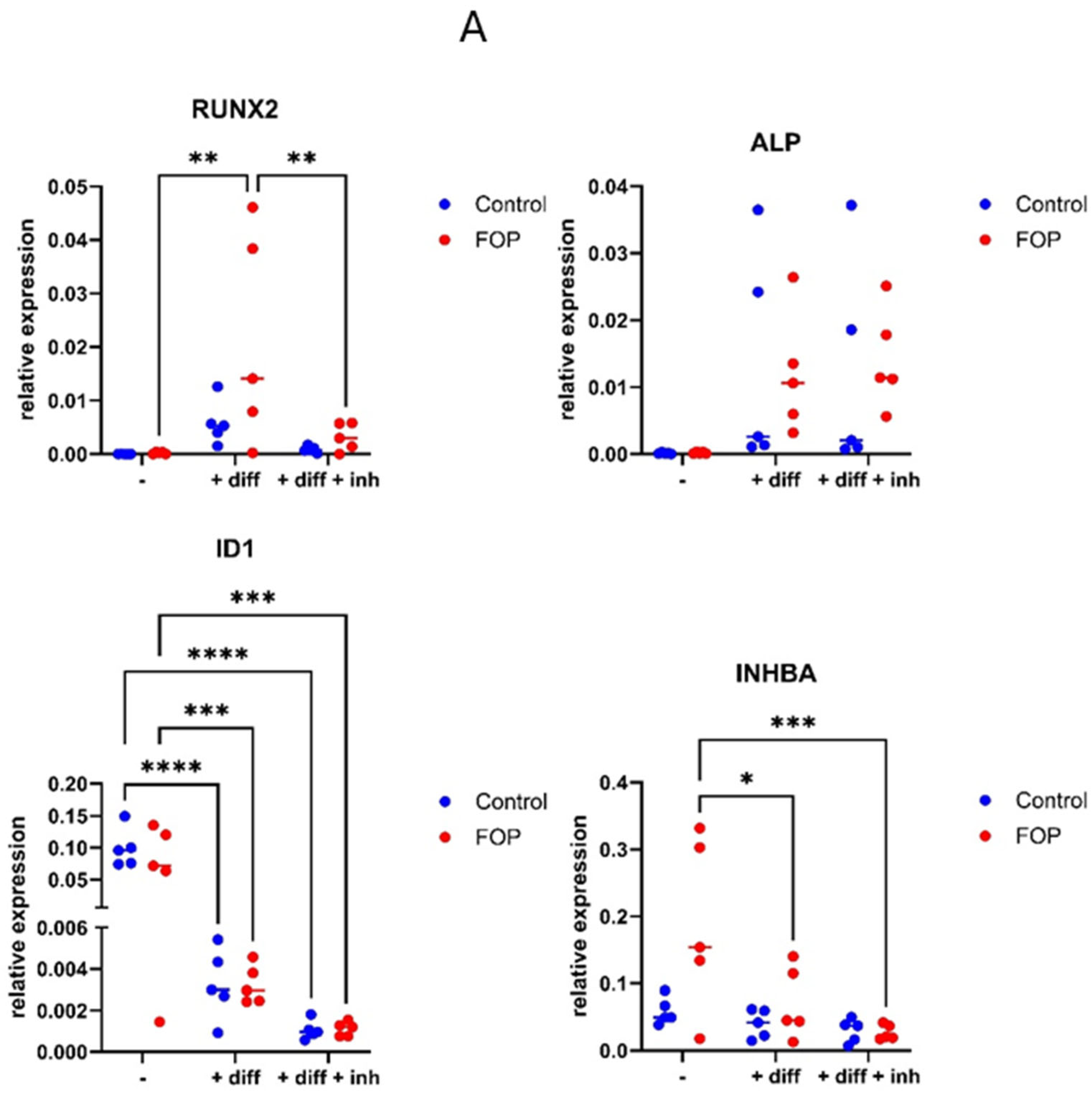 3.4. Expression of Osteogenic Differentiation Genes RUNX2, ID1, and INHBA Decreased in FOP Cells After Inhibitor Treatment