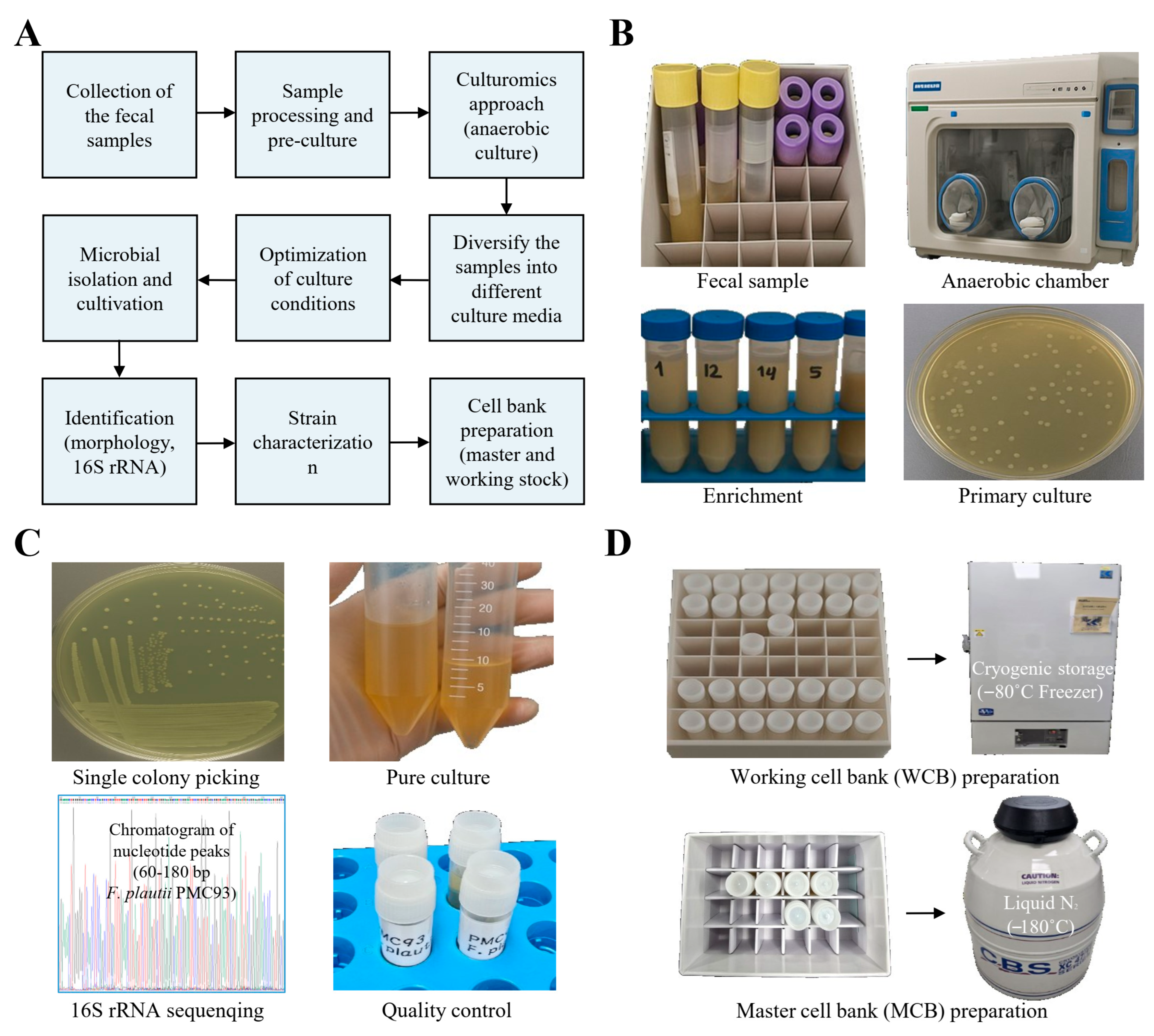 2.1. Clinical Stool-Derived Strain Isolation and Cell Bank Development