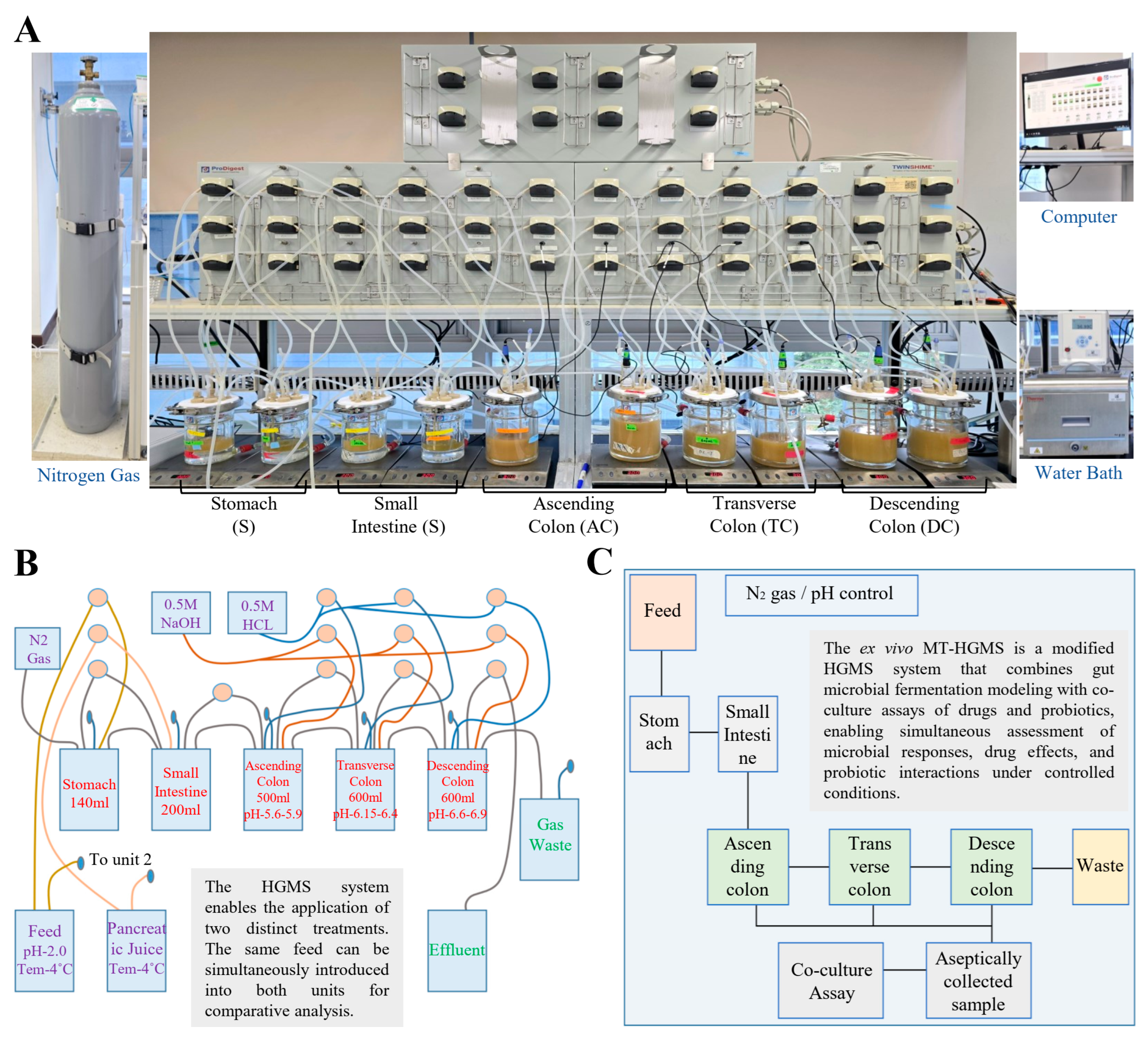 - Zhu, W.; Zhang, X.; Wang, D.; Yao, Q.; Ma, G.-L.; Fan, X. Simulator of the human intestinal microbial ecosystem (SHIME®): Current developments, applications, and future prospects. Pharmaceuticals 2024, 17, 1639. [Google Scholar] [CrossRef]