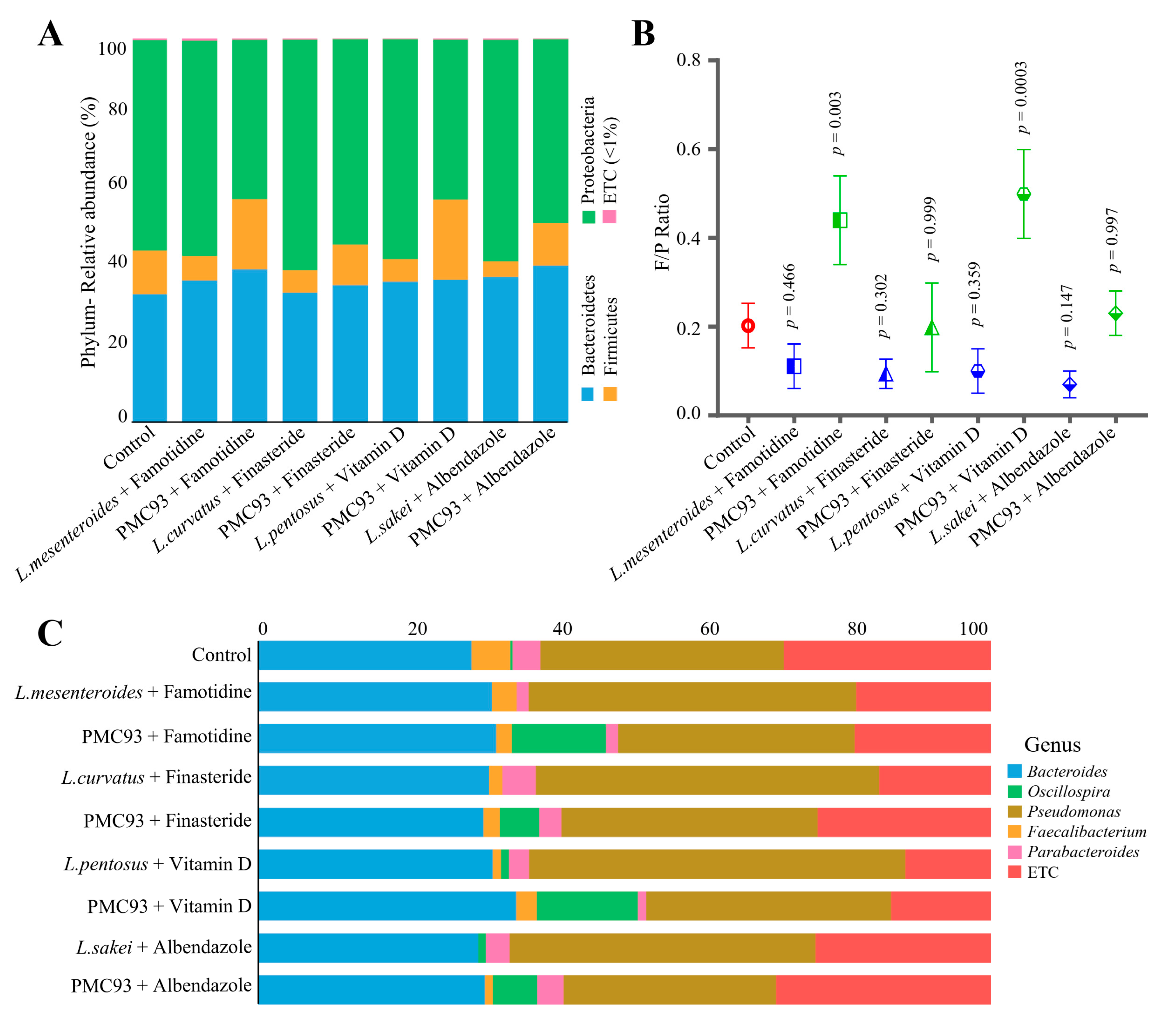 2.6. Ex Vivo Multi-Treatment Assays for Gut Microbiome Modulation by Conventional Probiotics and Common Therapeutic Agents