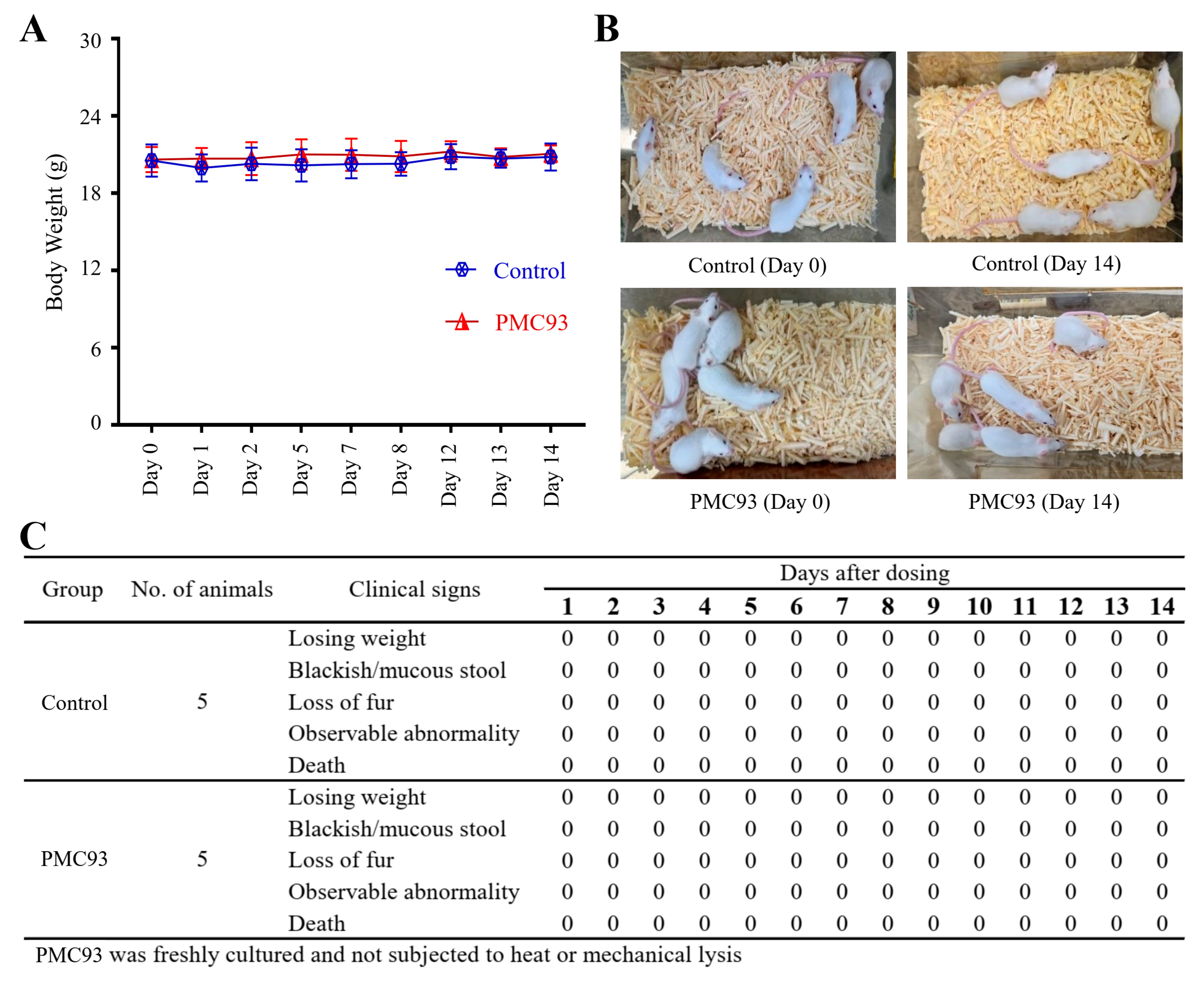 2.10. Acute Oral Toxicity Study of F. plautii PMC93 in Mice