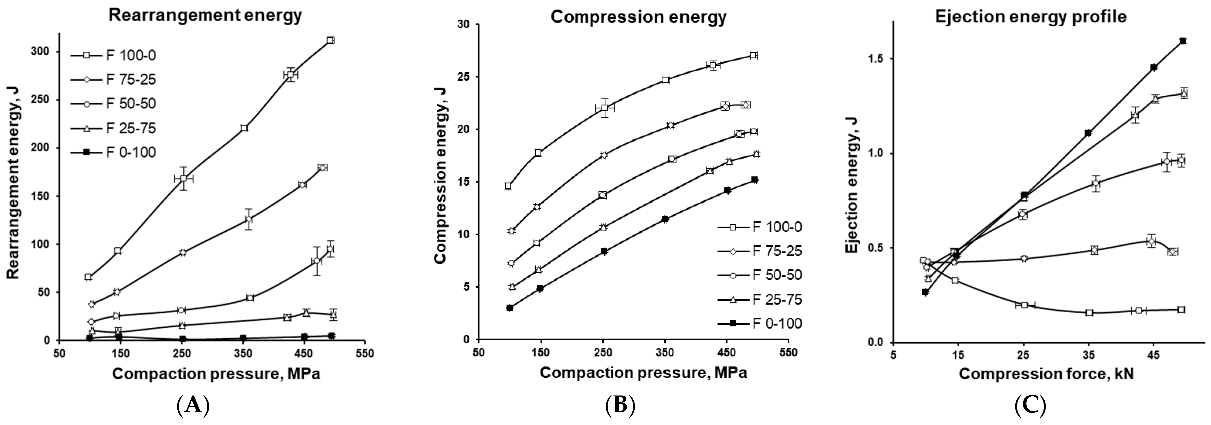 3.3. Energetic Characterization of the Tableting Process