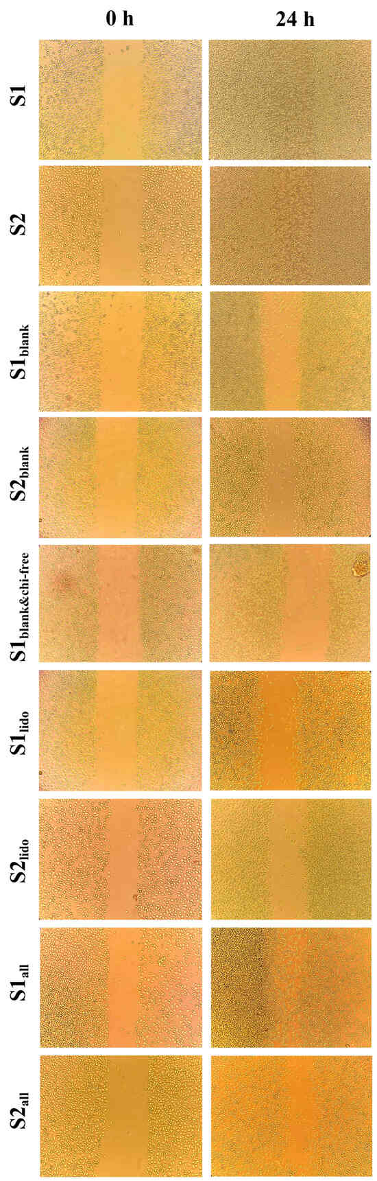 blank) promoted moderate cell migration, whereas the formulation lacking chitosan glutamate (S1