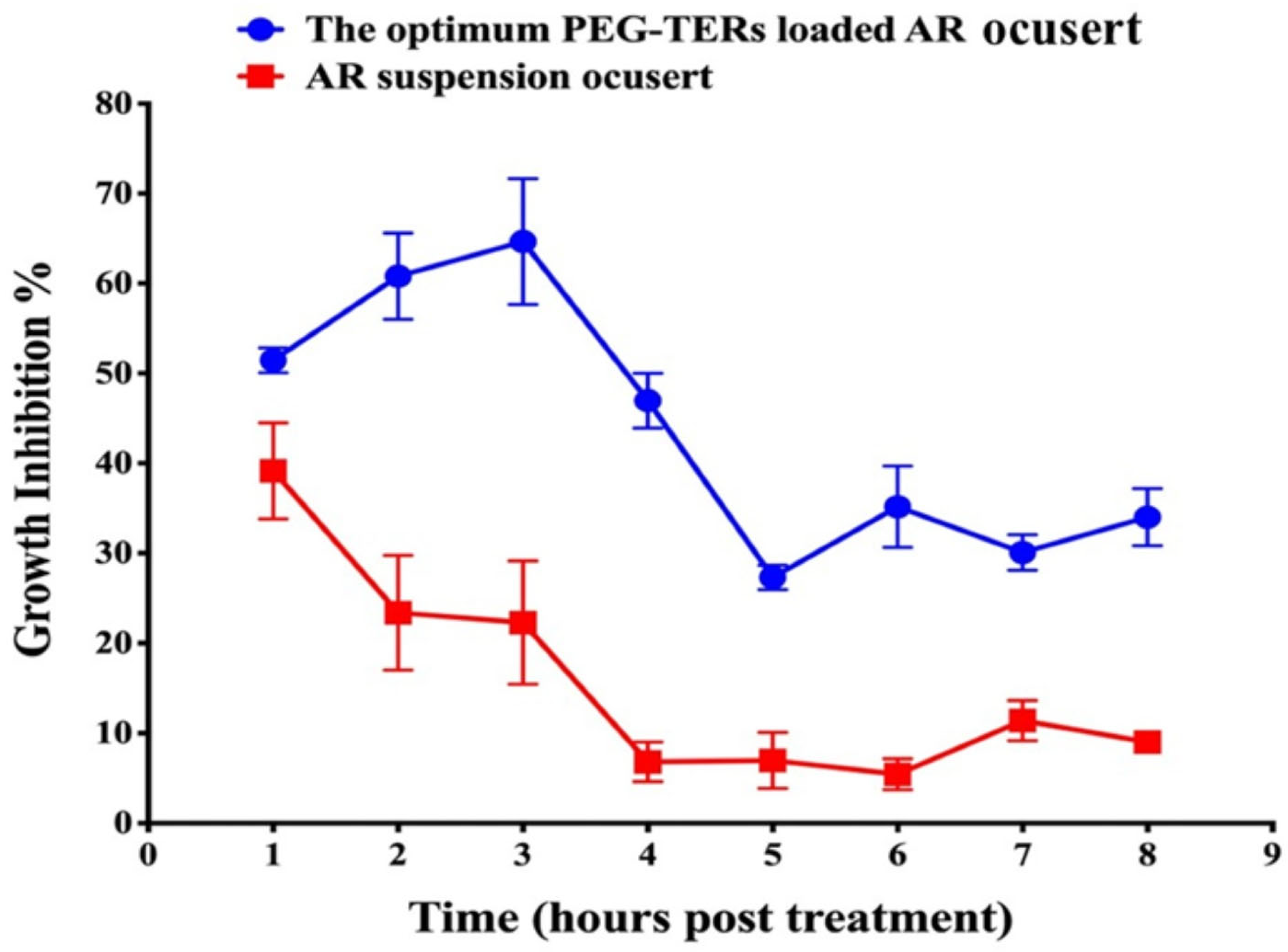 | The optimum AR-loaded PEG-TERs | 37.16 ± 3.91 | 5.04 | 0.001 |