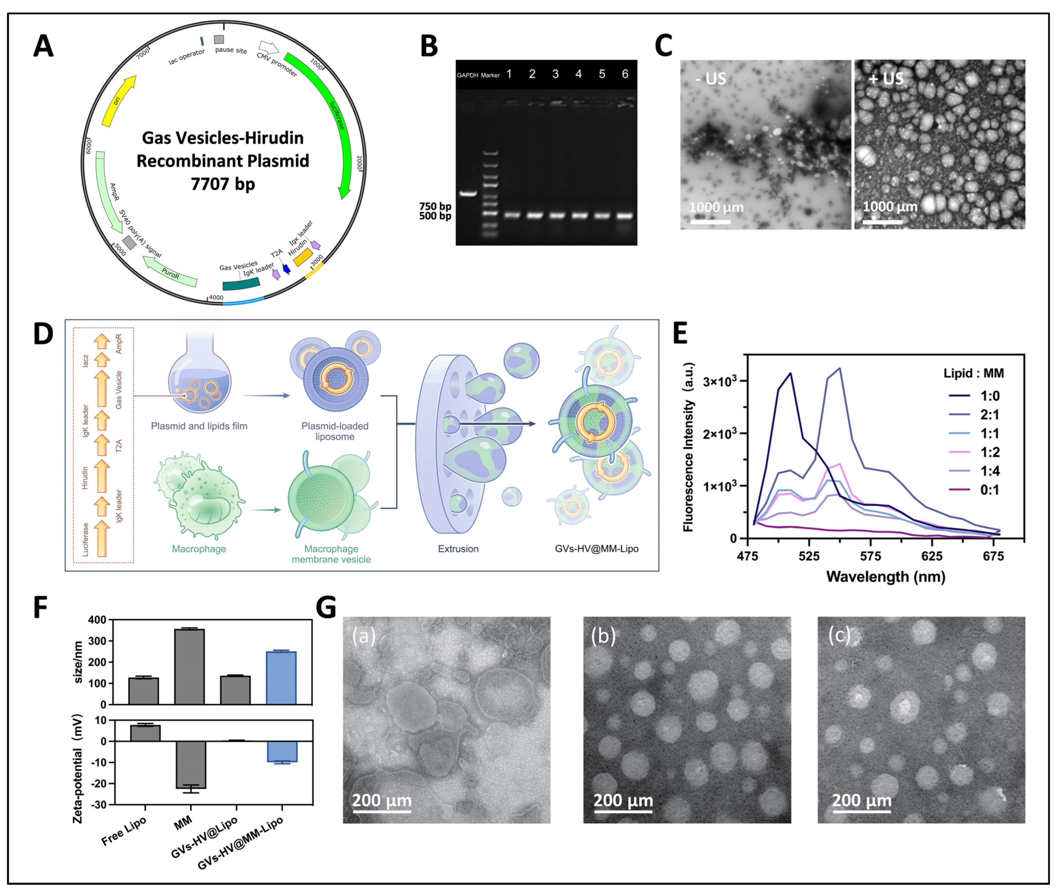 3.4. GVs-HV@MM-Lipo Mediated Linkage of Hirudin and Gas Vesicles