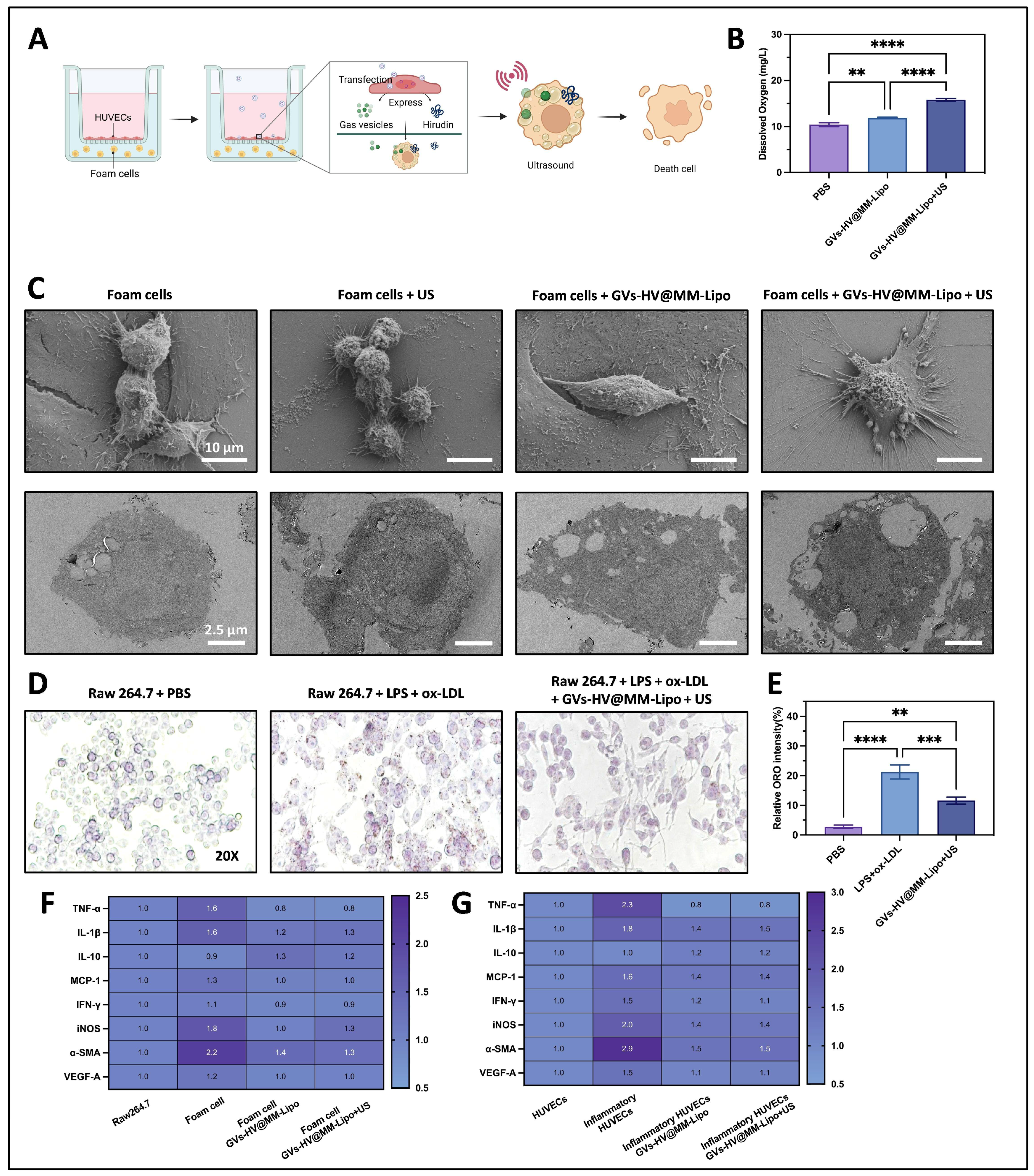 2.10. In Vitro Lipid-Lowering and Anti-Inflammatory Ability of GVs-HV@MM-Lipo